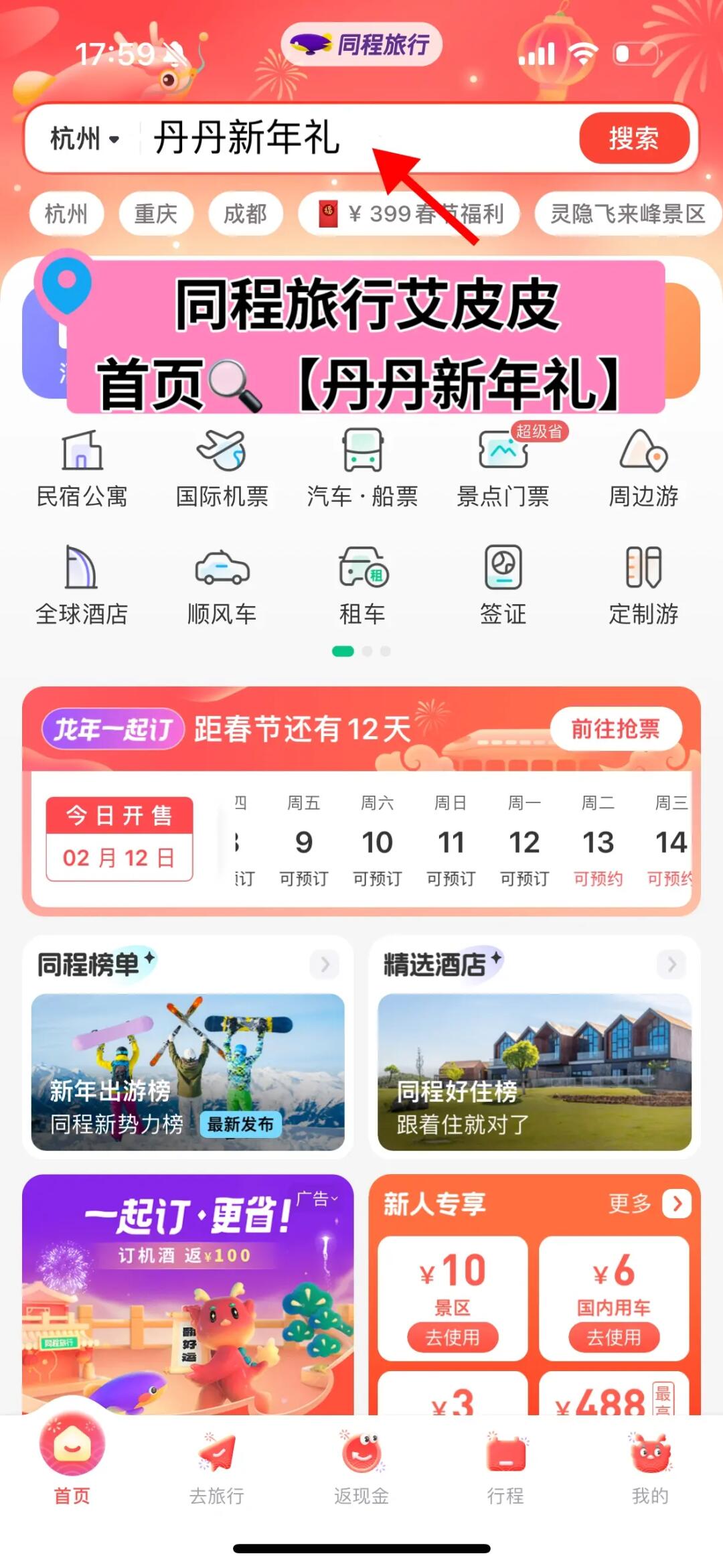 ⚠️对了‼️现在同程旅行正在为全网的丹丹发福利,做为同程旅行发现官偷偷告诉大家,如果你的名字里有“丹”,可以来同程旅行艾皮皮 🔍【丹丹新年礼】就能获得¥188专属春运优惠包,还有机会获得出行全额返现。还等什么呢?快去同程旅行参与活动领取福利🎉省下的银子能吃好多好吃的🤭