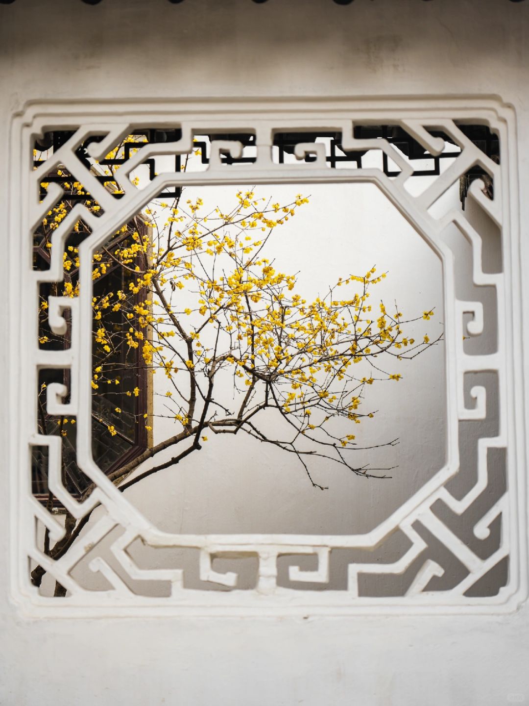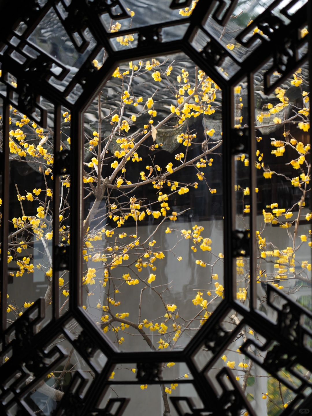 个人觉得狮子林的腊梅最美,最好拍,网红几位很好找,一个花窗的前方就有一颗腊梅