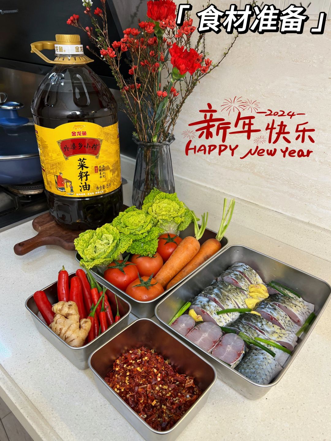 🍀食材:草鱼、葱姜蒜、红线椒、小米辣、干辣椒、蒜苗;