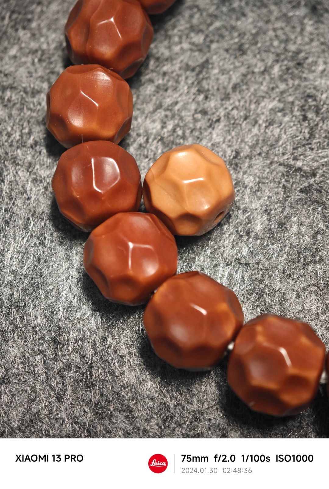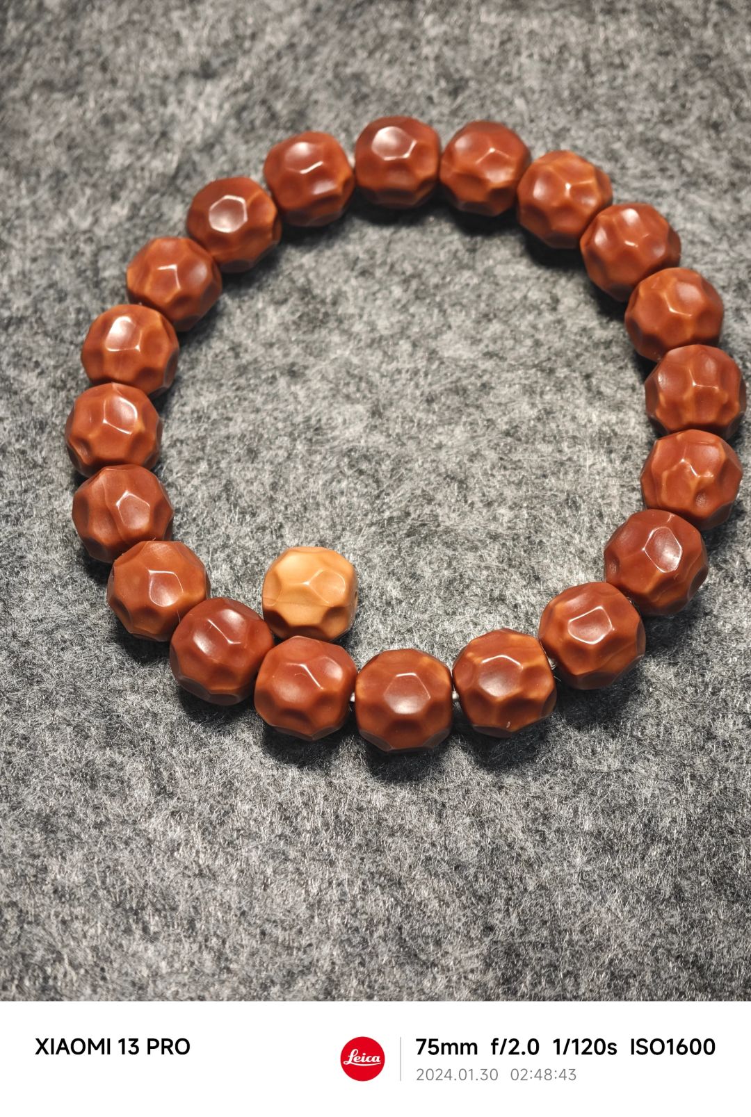 不知道啥时候开始,喜欢玩串都留个备籽,方便做对比拍照。 这条奶酪无相猴头,之前发过好几次了,把备籽掏出来对比一下,发现变化还真的挺大。 基本很少盘,就是佩戴,想起来就用元夙油上油抹一把,盘两圈。 供参考。