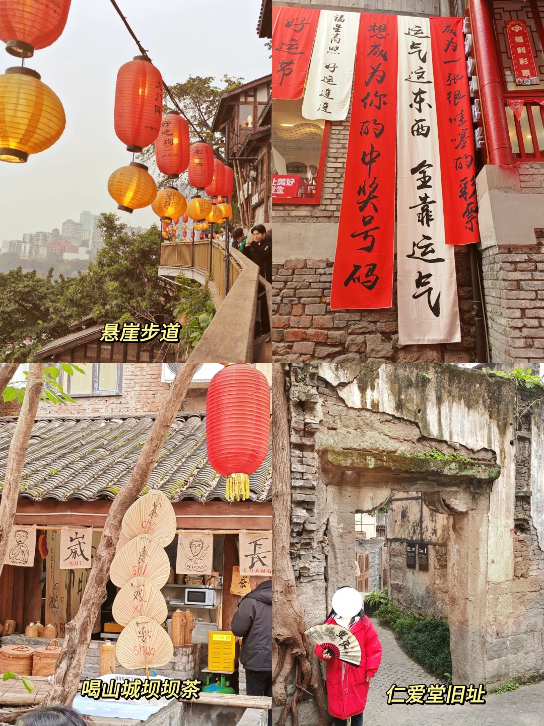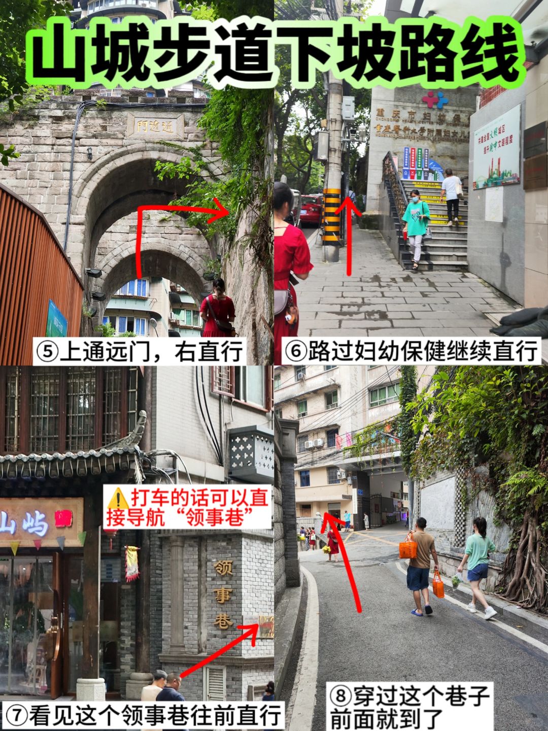 🎈下坡路线打卡顺序:领事巷→山城巷→仁爱堂→荒野花园→山城时光里图书馆→山城坝坝茶→爱情小巷→山城悬崖栈道→厚庐石库→山城记忆馆→经典爱心打卡