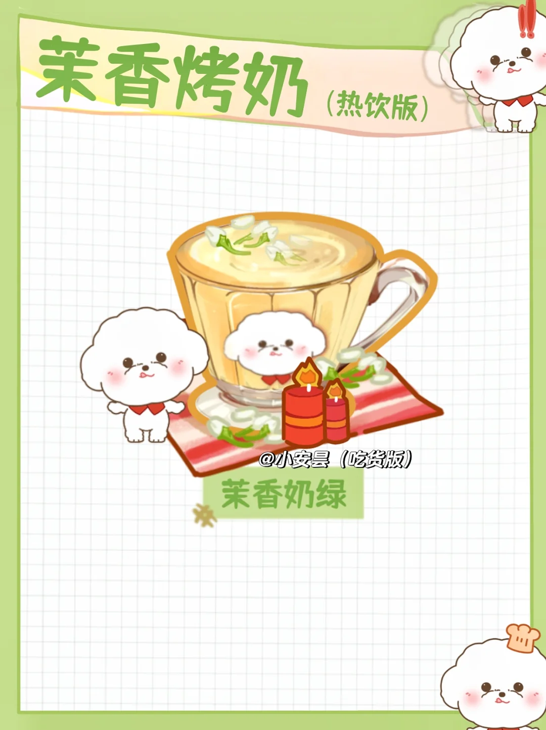 茉香烤奶(热饮版) 一杯热气腾腾的茉香烤奶,满屏暖意,简直是冬日治愈小确幸!🍮✨ 这种热饮绝对是年夜饭桌上的一抹亮色,撩动人心的味蕾,多惬意!🥂🎊 🥣材料准备 绿茶➕纯牛奶➕适量冰糖➕干茉莉花 🥣制作步骤 1⃣️首先在锅里加入绿茶和适量冰糖,再加入一点点的纯净水,小火加热!炒香! 2⃣️炒香之后,加入纯牛奶,继续小火加热! 3⃣️中途可以加点茉莉干花,最后加热沸腾就关火!完成啦 春节,定要给自己和亲友端上这款美味的烤奶,温暖幸福的滋味难忘。这个秘制的热饮,让新年更多一份温暖与嗨爆!🎈✨