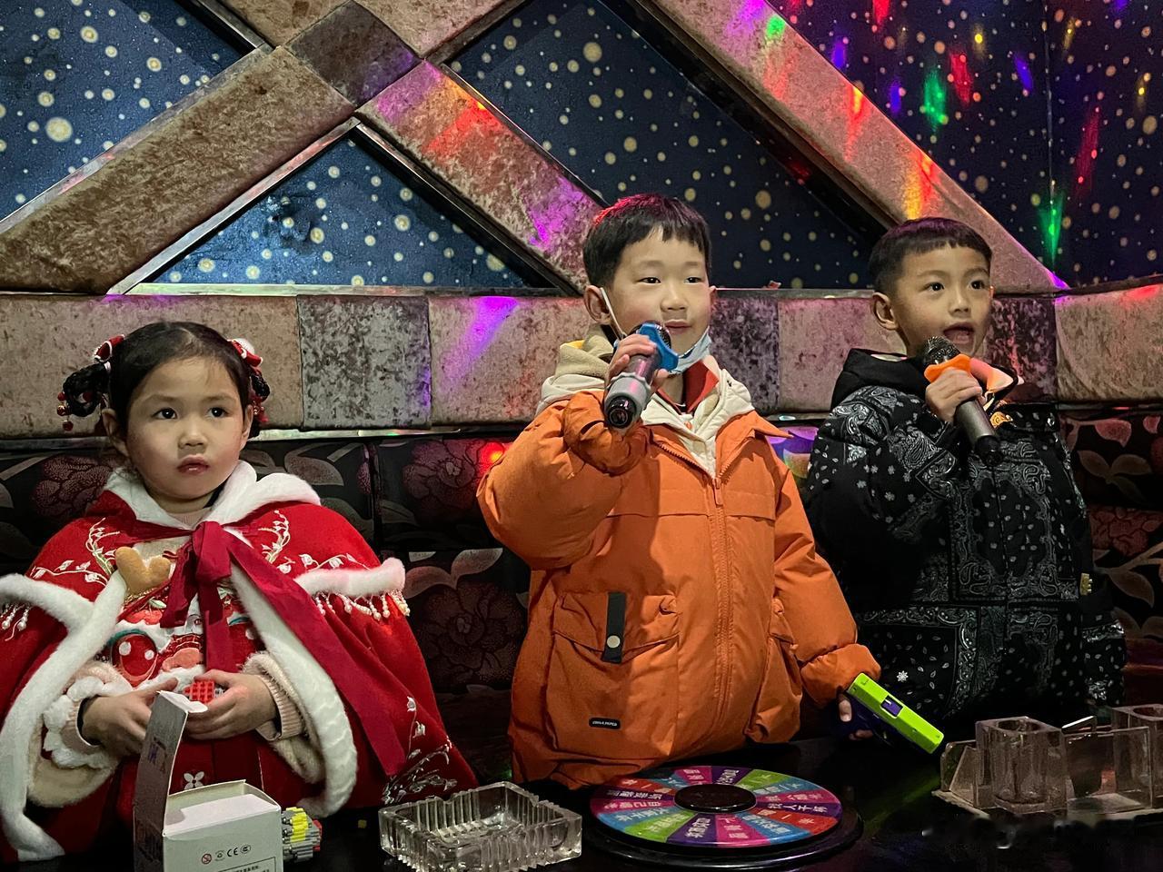 二舅家里的卡拉OK,应该是九几年的了,一直没有翻新,设备和歌曲都比较老旧,一般也没有人在唱。 团年饭之后,几个小朋友到处乱跑着玩儿,突然就被他们找到了,仿佛发现了一片新天地,赶紧闹着让二舅爷打开,好不容易才调试启动好,这五彩斑斓的灯光,不愧是90年代的风格。 熟悉的喜羊羊、两只老虎、黑猫警长、大风车音乐袭来,几个小麦霸顿时手舞足蹈,一个比一个唱的还卖力。 过年了,果然还是小朋友是最开心的。 #天南地北大拜年# #我来唠家常#