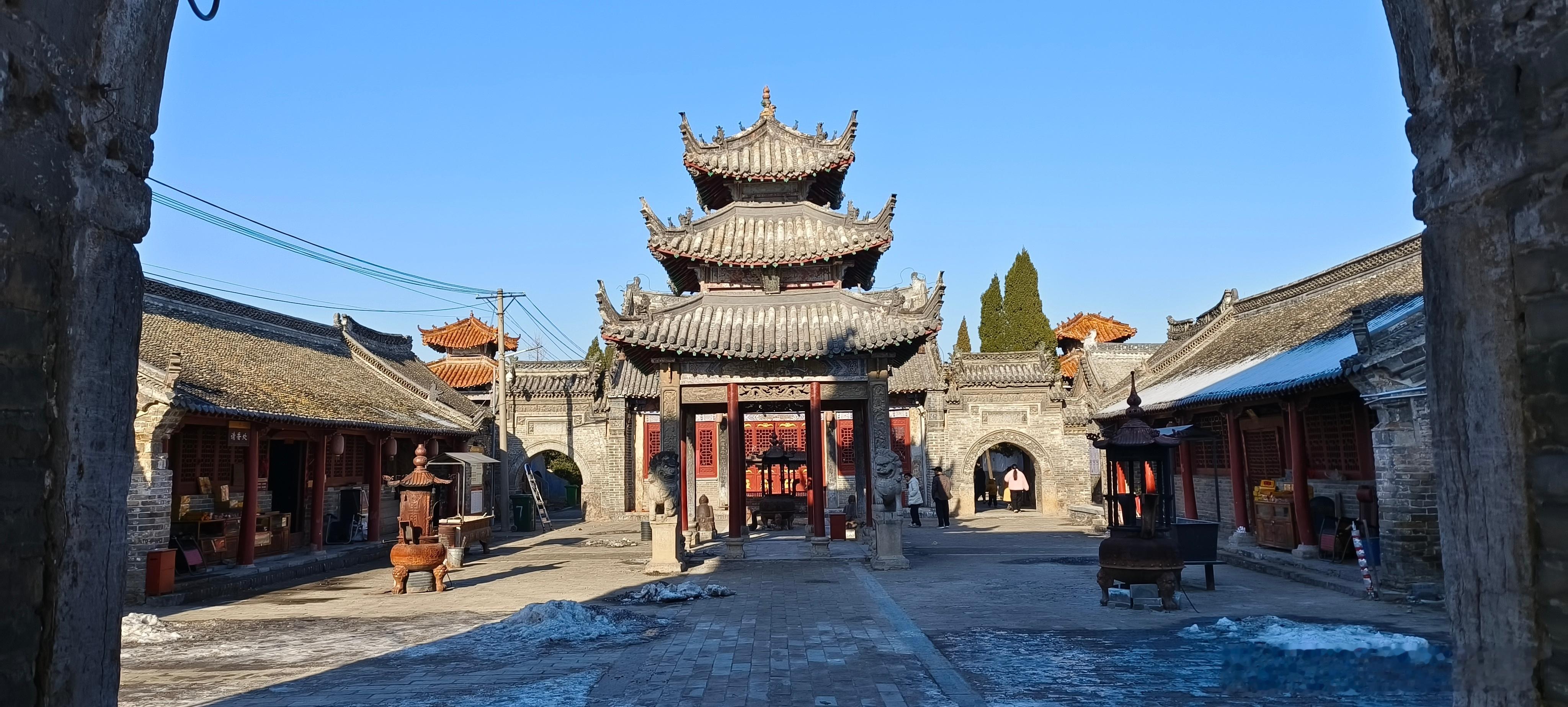 天宝宫是道教宫观,总占地面积26000平方米,坐北朝南。庙院分七进,中轴线上有山门、拜亭、岳飞殿、关王殿、老君殿、玉皇殿、雷祖殿、三皇殿、祖师殿,两侧有廊庑、禅院、掖门、斋舍。整个宫观布局严谨壮观。天宝宫存有碑刻数通,对研究真大道教兴衰及确定天宝宫创建年代有重要价值。