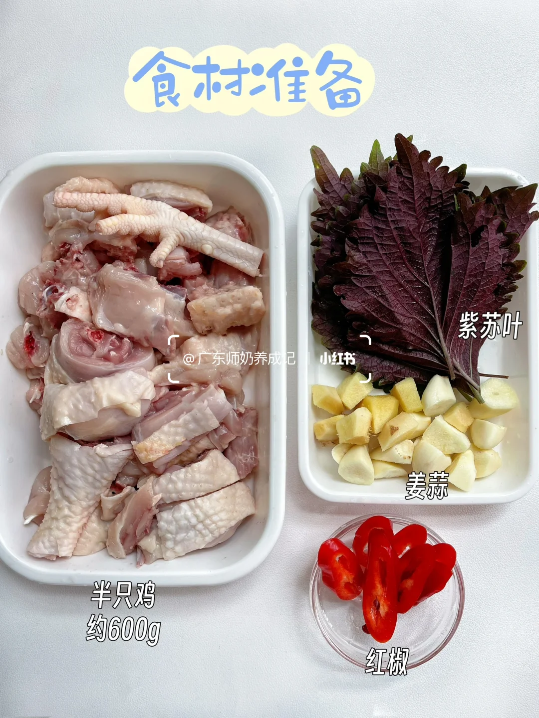 📝【食材】:半只鸡,紫苏叶,姜蒜,红椒