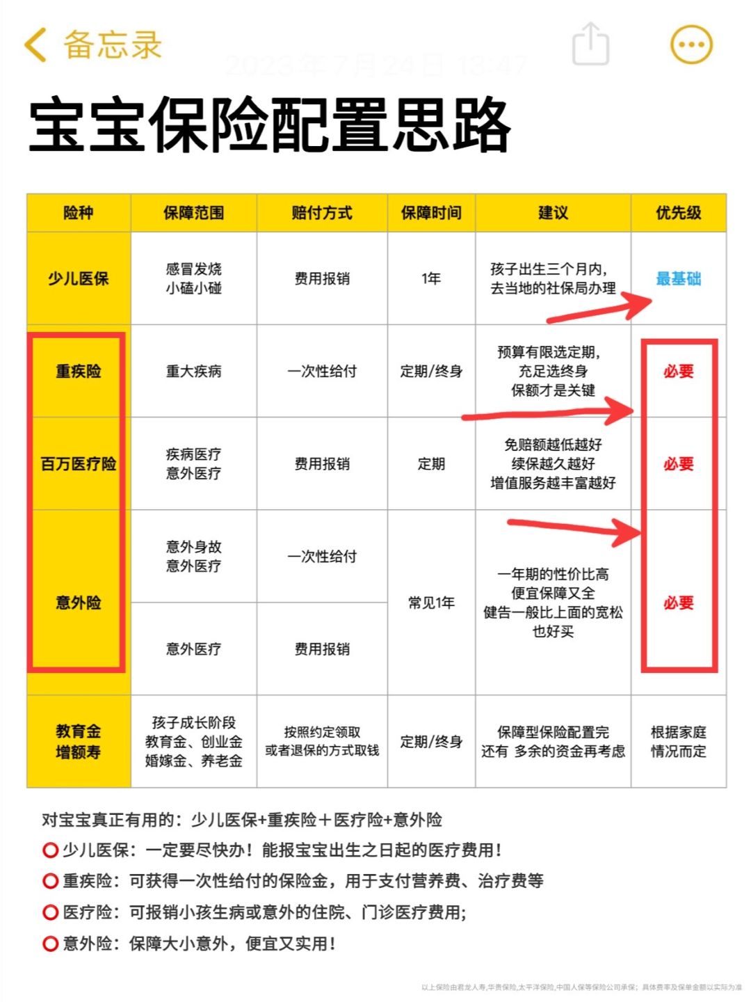 在这里先给大家分享一下宝宝真正需要的几个保险: