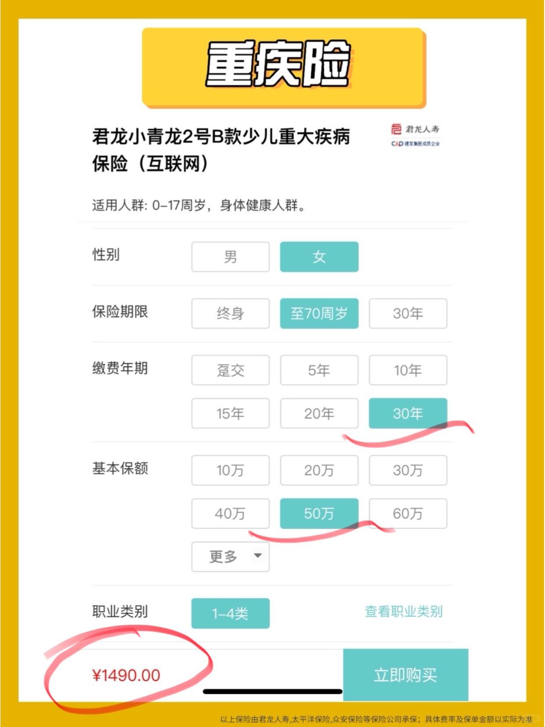 它主要弥补重大疾病带来的经济损失。一定要选覆盖少儿高发疾病,身故不要勾选,不划算!