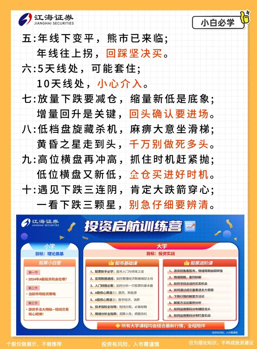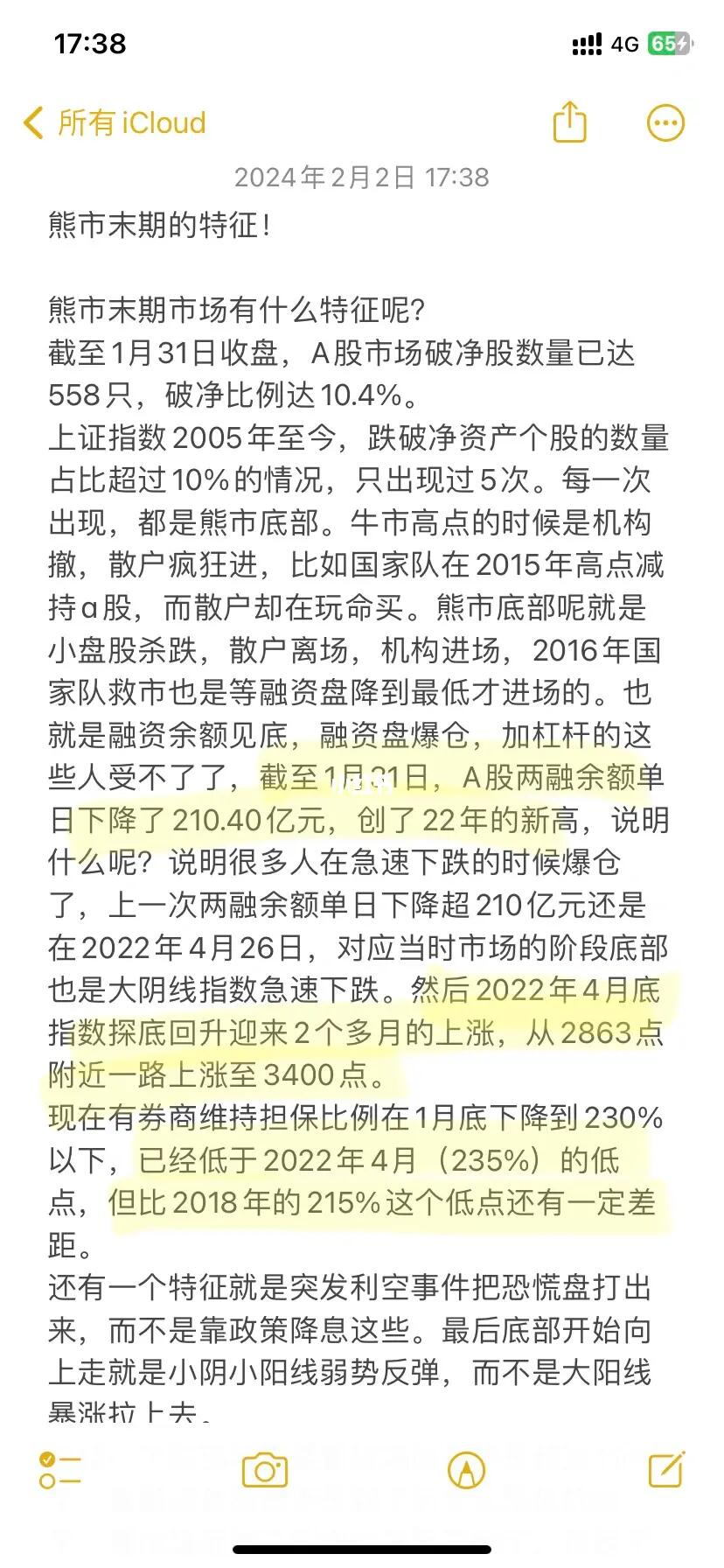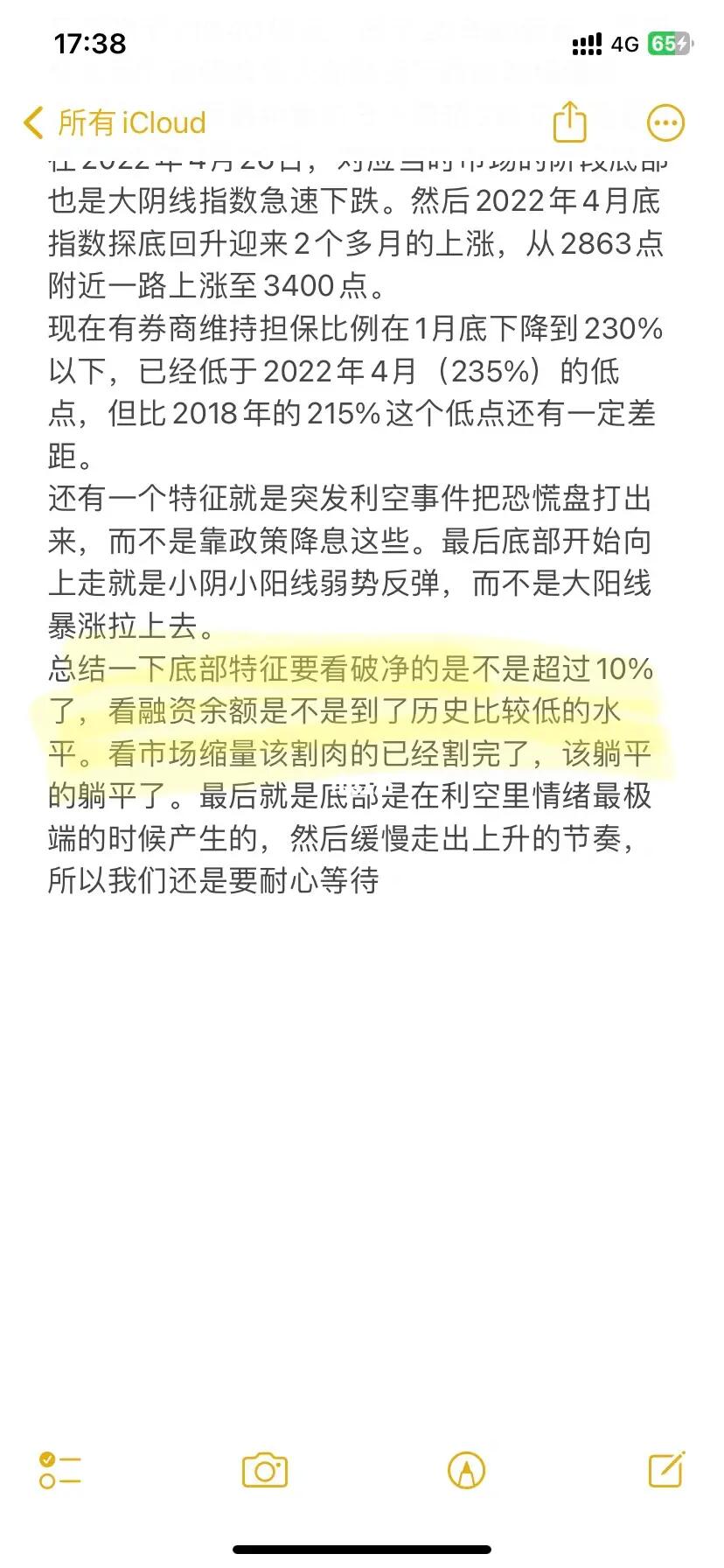 总结一下底部特征要看破净的是不是超过10%了,看融资余额是不是到了历史比较低的水平。看市场缩量该割肉的已经割完了,该躺平的躺平了。最后就是底部是在利空里情绪最极端的时候产生的,然后缓慢走出上升的节奏,所以我们还是要耐心等待!