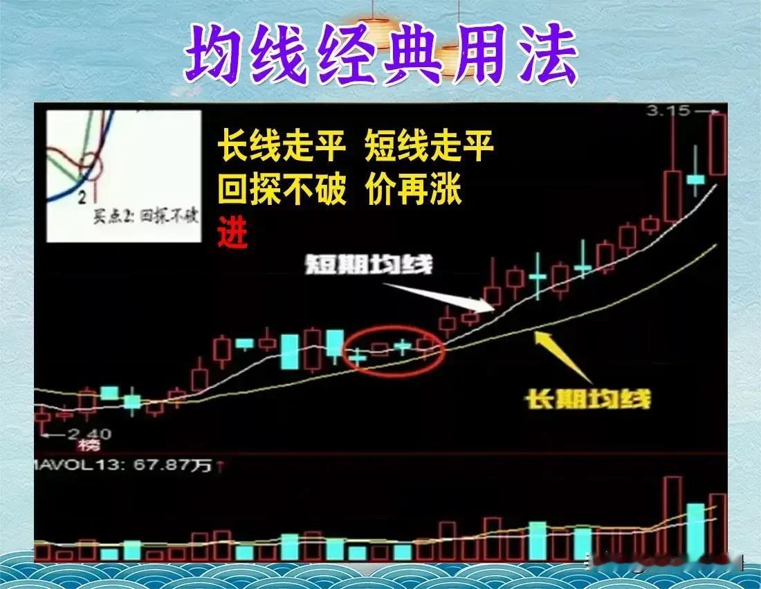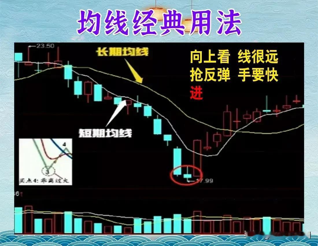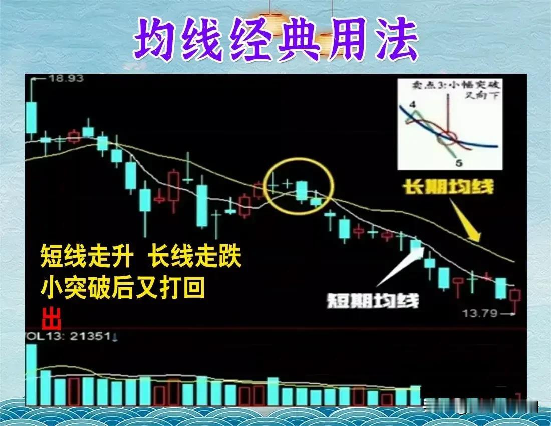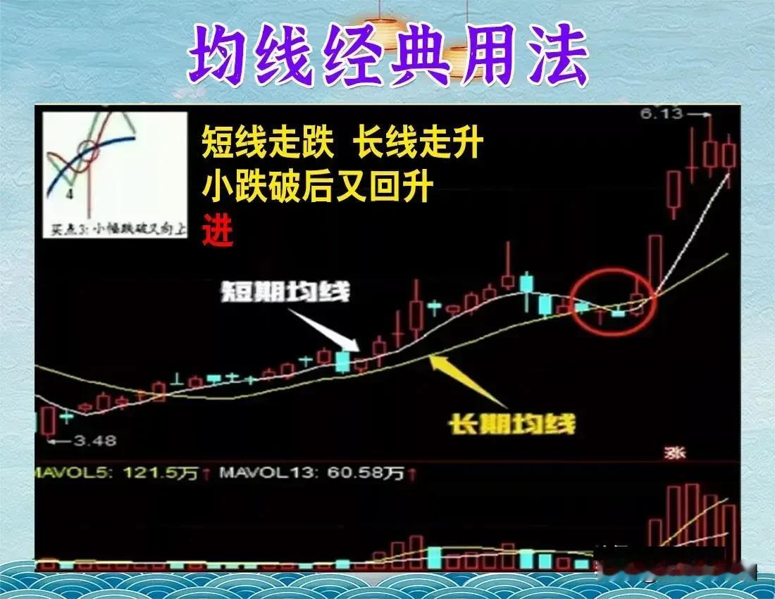 均线是技术分析的最基础指标,是技术分析最常用的。在判断股票趋势时非常有用。通过均线能很好的分析支撑位阻力位,进出场时机。均线很神奇,长线、中线、短线都可以使用。 均线最经典用法阳哥分享给大家,如下图。大家可去好好研究下,觉得有帮助的也可以跟其他朋友分享。
