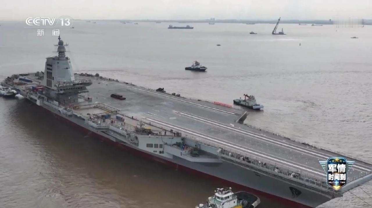 我国海军福建号航空母舰正面照和侧身照,如果不悬挂旗帜的话,一时半会还真的会跟美军