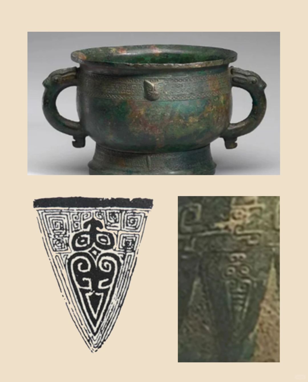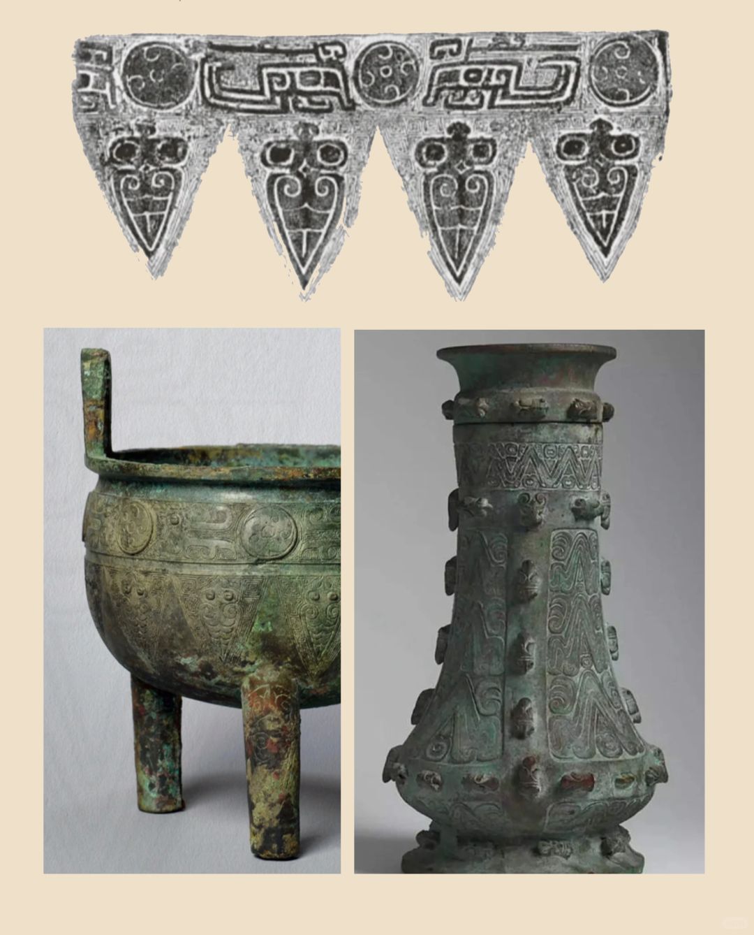 大家好,欢迎来到【某先生】课堂之中国传统纹样篇,今天为大家讲述的是关于《蝉纹》的故事~ 蝉纹是中国古代青铜器纹饰之一, 多见于青铜器、玉器、陶瓷器上。 - 蝉又名蜩,是季候的虫。 蝉纹的形状大多为垂叶形三角状, 腹有节状条纹,无足,近似蛹, 四周填云雷纹。 - 盛行于殷末周初, 主要装饰在鼎、爵的流上, 少数觚、个别盘上也饰有蝉纹。 - 蝉纹的寓意可能与蝉的生物特性有关, 象征死而转生之意, 也有象征饮食清洁的意思。