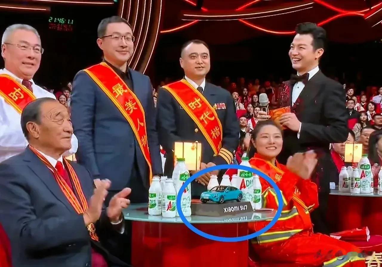 哈哈,雷军这次春晚赞助可是搞笑了! 小米汽车SU7模型亮相春晚,结果比旁边的