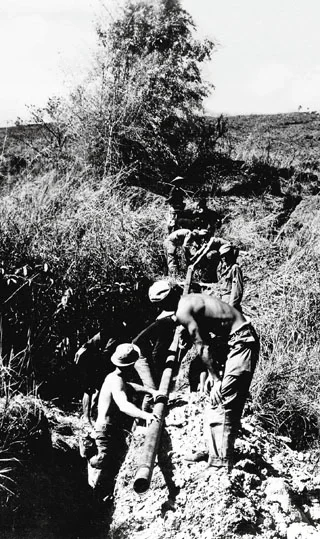 图8:铺设中印油管的美军和当地民众