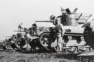 图3:第200师虽是按德国装甲师模式组建,但其装甲多为T-26坦克等苏制装备。图为在湖南战场的T-26坦克