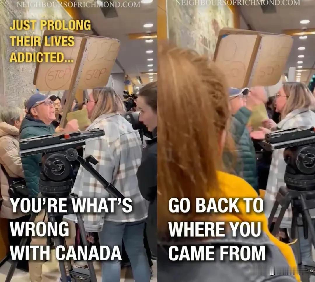 真的太嚣张了! 近日,加拿大一女子因华人阻止在当地医院设立毒品注射点,竟然恼羞成怒,冲着他们怒吼道:“你们不属于这里,回香港去。”此事引发国内一些网友热议。 我敢肯定,在加拿大有着这样种族歧视的人不在少数,华人群体哪怕已经规化加拿大经过了数代人,也依然会因为他们的黑眼睛黑头发黄皮肤,被那些种族主义者歧视。除了美国,加拿大也时不时发生无故殴打华人或者亚裔的案件,而这跟当地治安状况没有任何直接关联。 所以说,西方人是严重精神分裂的,一方面高喊自由民主口号,另一方面又大搞种族歧视,这种赤裸裸的双标行为,在加拿大这种国家还特别吃香。 #加拿大白人女性喊话华人“回香港去”#