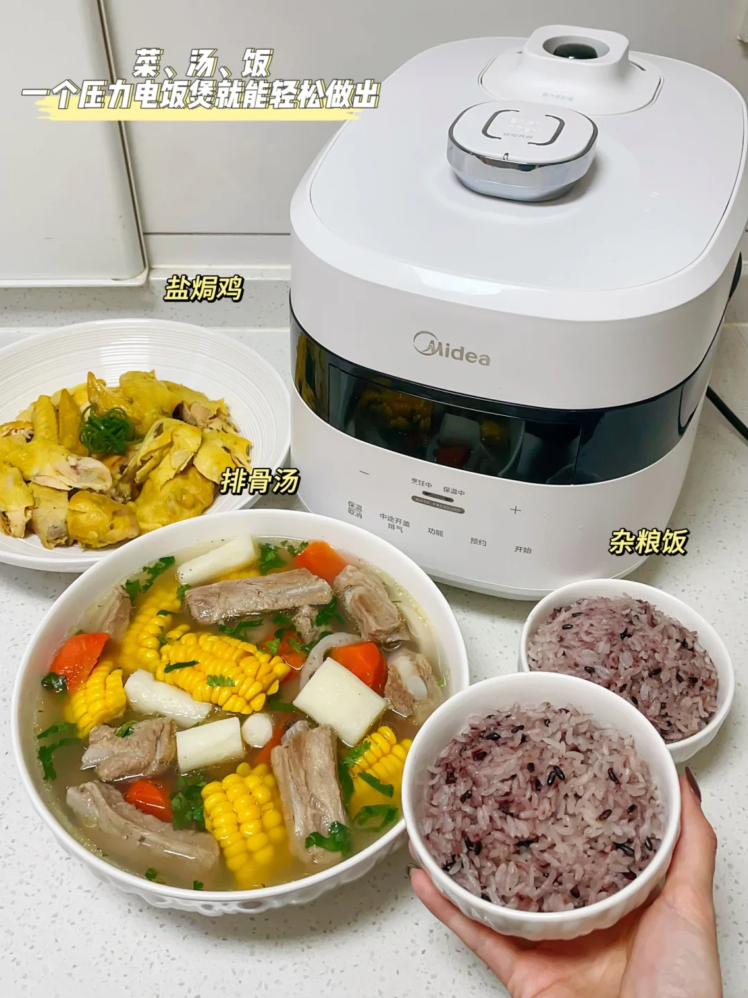 [集美R]过年想展现厨艺,但又不想太复杂,可以巧用厨房电器哦~今天我就用美的赤炎压力电饭煲做了一菜一汤一饭,又搭配了几个快手菜、一桌子饭菜很快就搞定了。