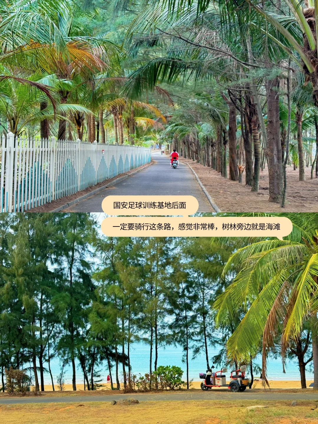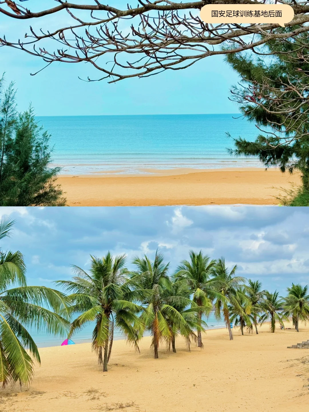 1️⃣📍:国安足球训练基地,路口有个写着“国安”的石头,拐进去200米到海边!沿海路2公里左右,一半树林一半大海,人少原始,有树林不晒!