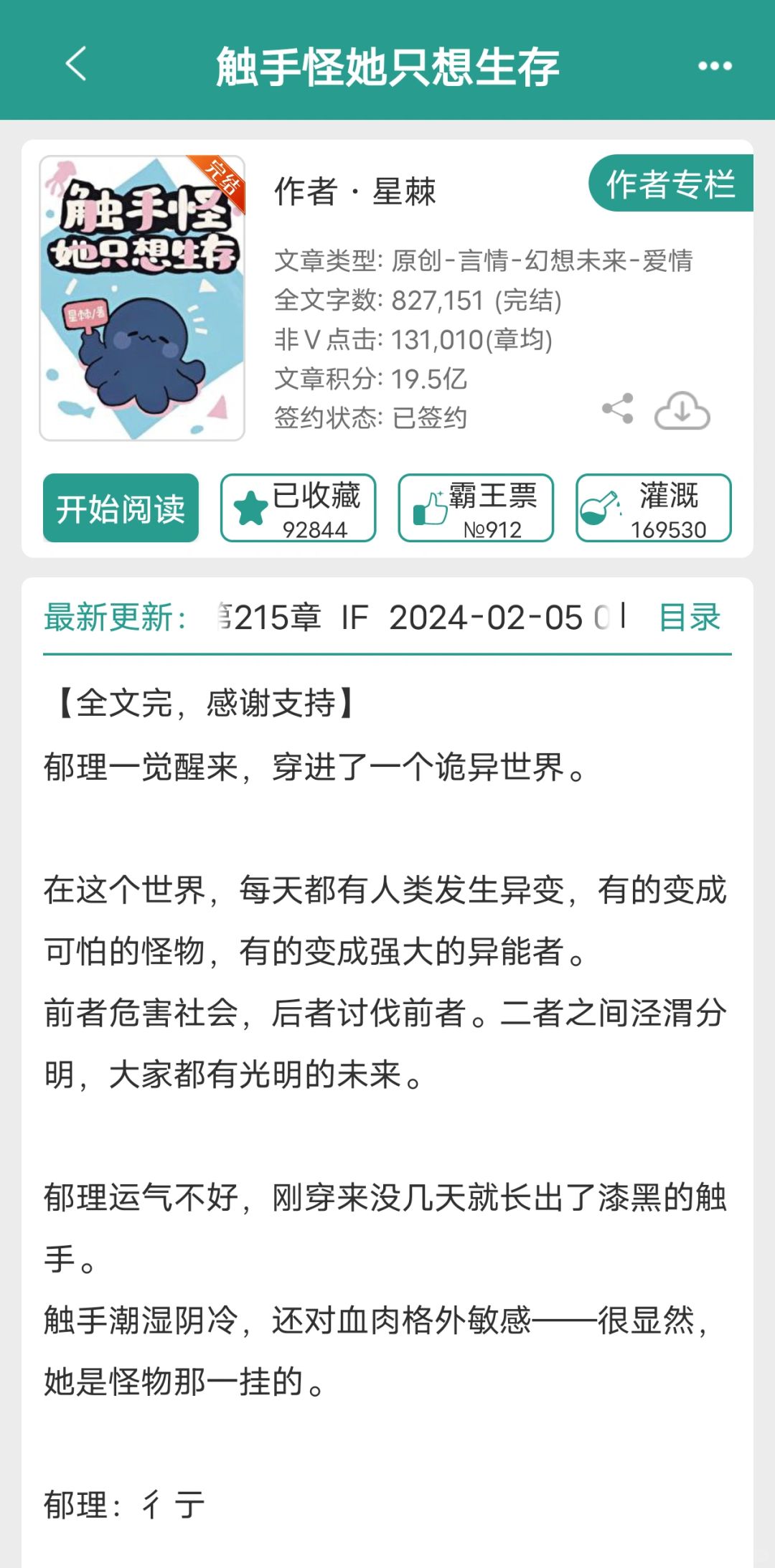 郁理运气不好,刚穿来没几天就长出了漆黑的触手。