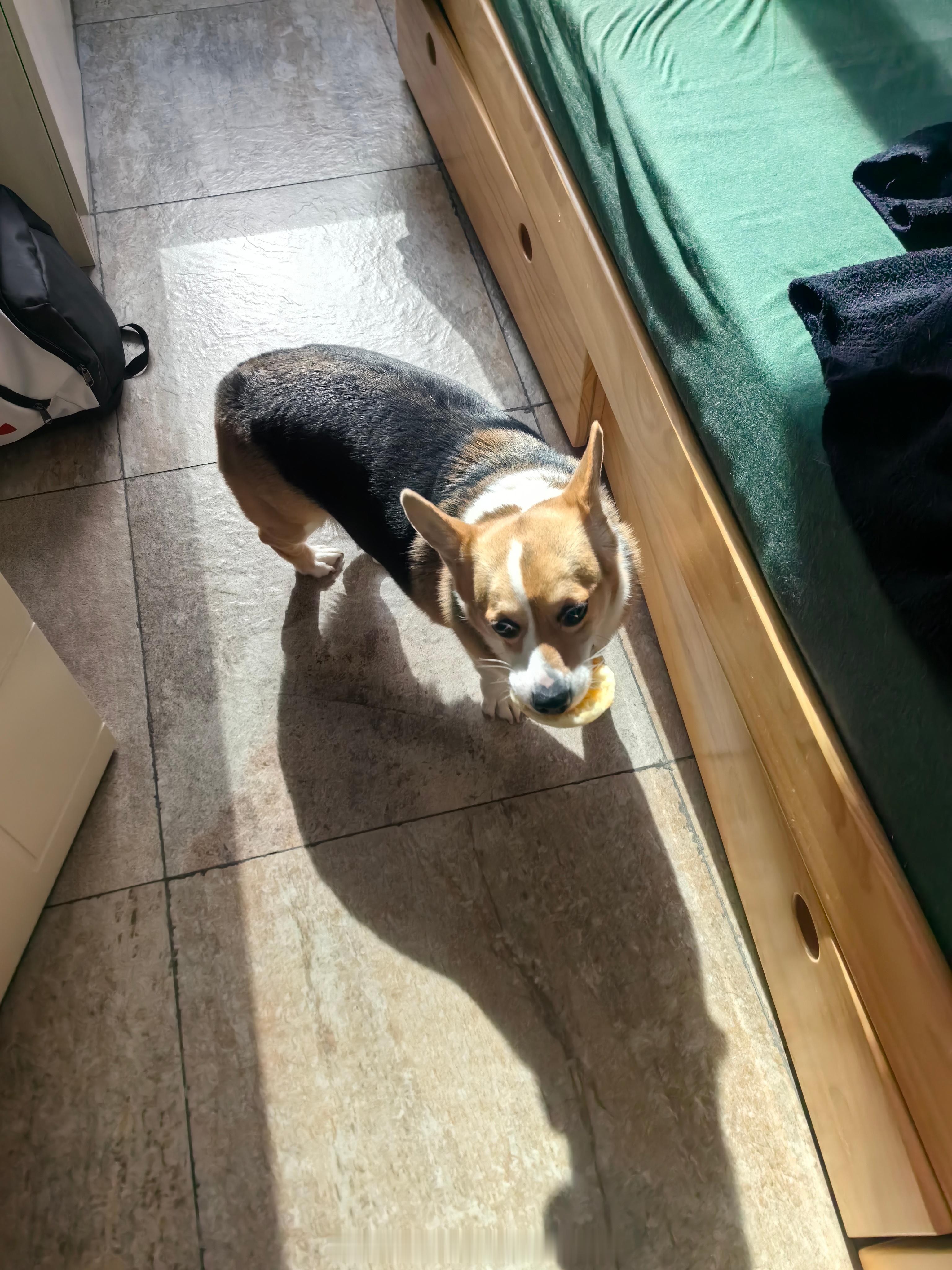 大胖在用心藏匿它的家当,开始放书房,转身离开的时候突然想起我在书房,担心我把它包子皮吃了回来取走了[微笑]扭头放正在上厕所的爸爸脚旁边,看来还是信任爸爸吖[微笑]