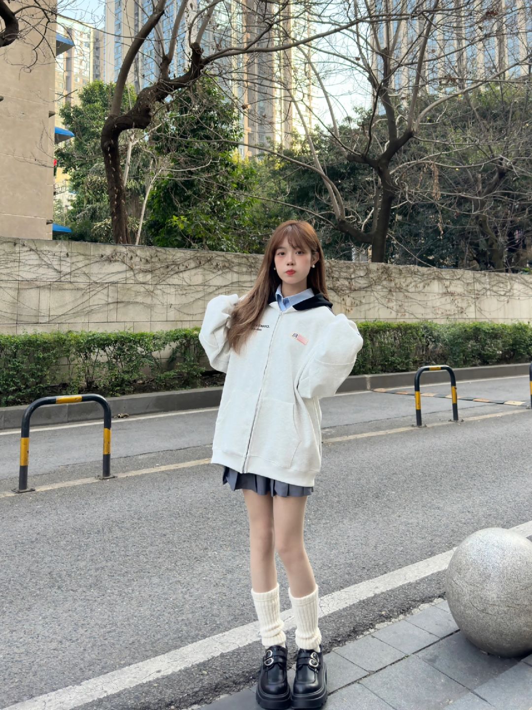 慵懒感穿搭 OOTD穿搭分享 灰色卫衣 美式复古卫衣
