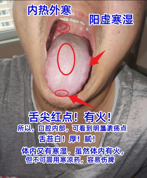 今日舌诊案例分析:内热外寒,阳虚寒湿,阴虚血瘀,肝郁克脾,五脏俱损![谢谢][谢