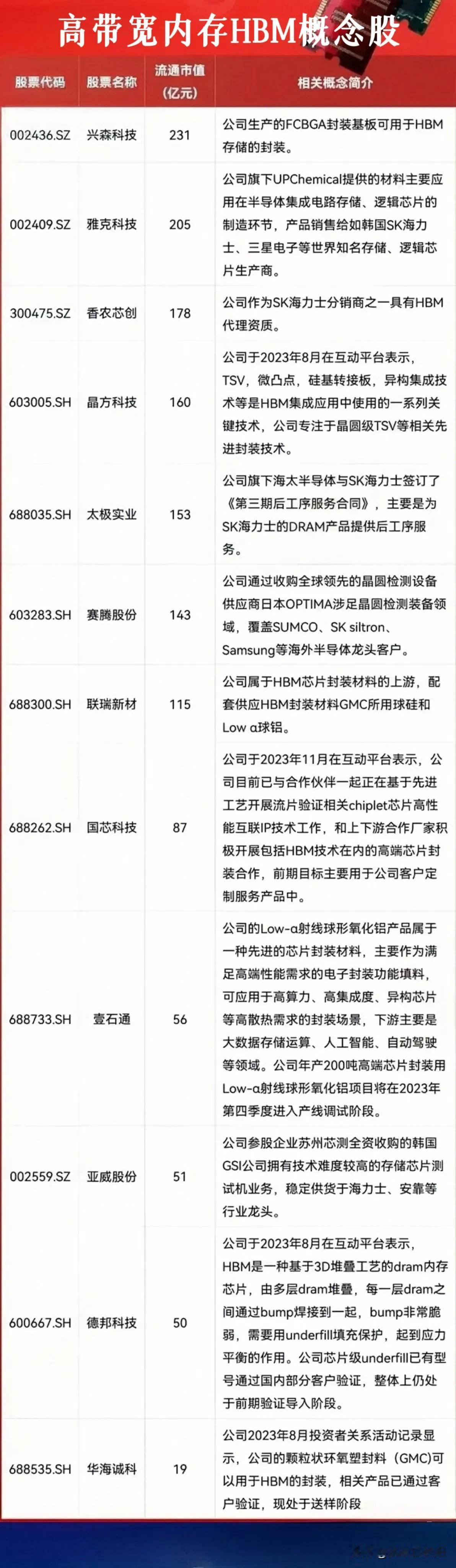 SRAM存储芯片+HBM高带宽内存+AI算力芯片概念龙头汇总。 人工智能的快速发展,需要各种高性能的芯片和内存为其提供强大助力。这些高性能的芯片和内存未来需求强大,相关上市公司也会获得快速发展。