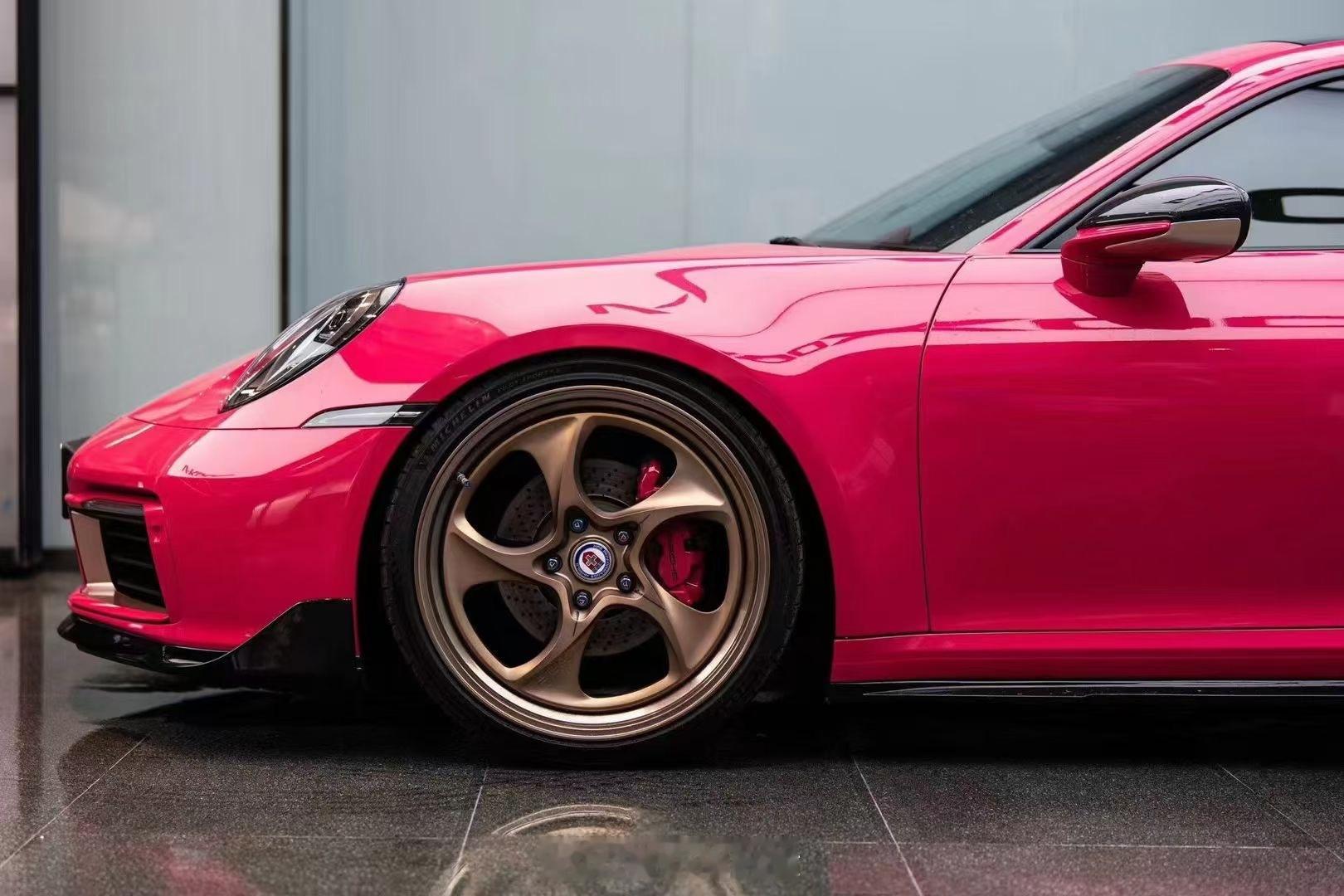 保时捷992 Techart 经典复古尾翼➕HRE轮毂,装车实拍,非常协调[耶]