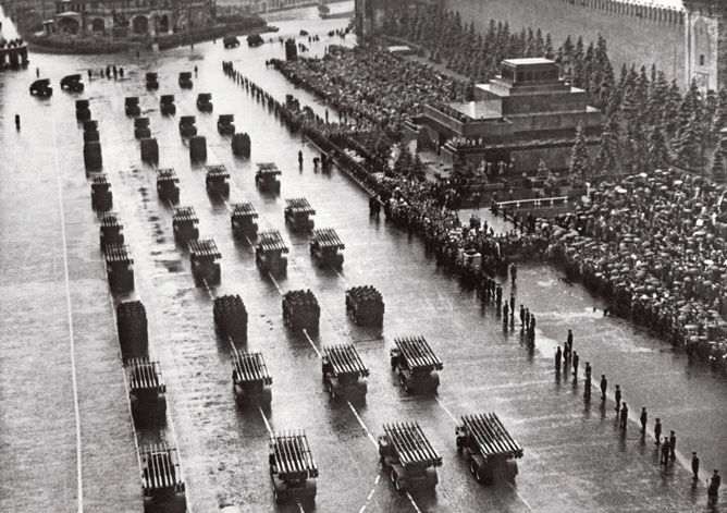 图5:1945年6月24日,莫斯科举行盛大的胜利日庆祝活动。“喀秋莎”多管火箭炮编队浩浩荡荡地穿过红场