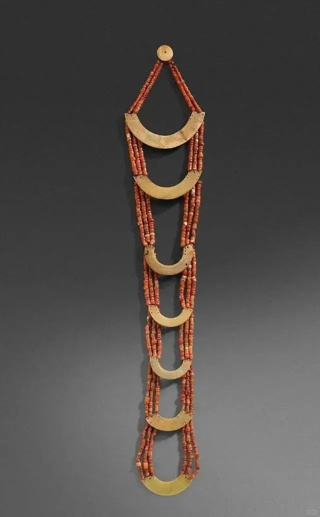 六璜联珠串佩饰 .西周(公元前11世纪﹣前771年)·山西省曲沃县北赵村晋侯墓地31号墓出土.丧葬玉,由408件玉饰组成。出土于墓主胸部,上端过颈,下端过腹。现藏山西博物院