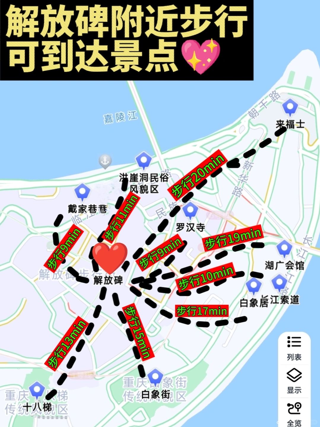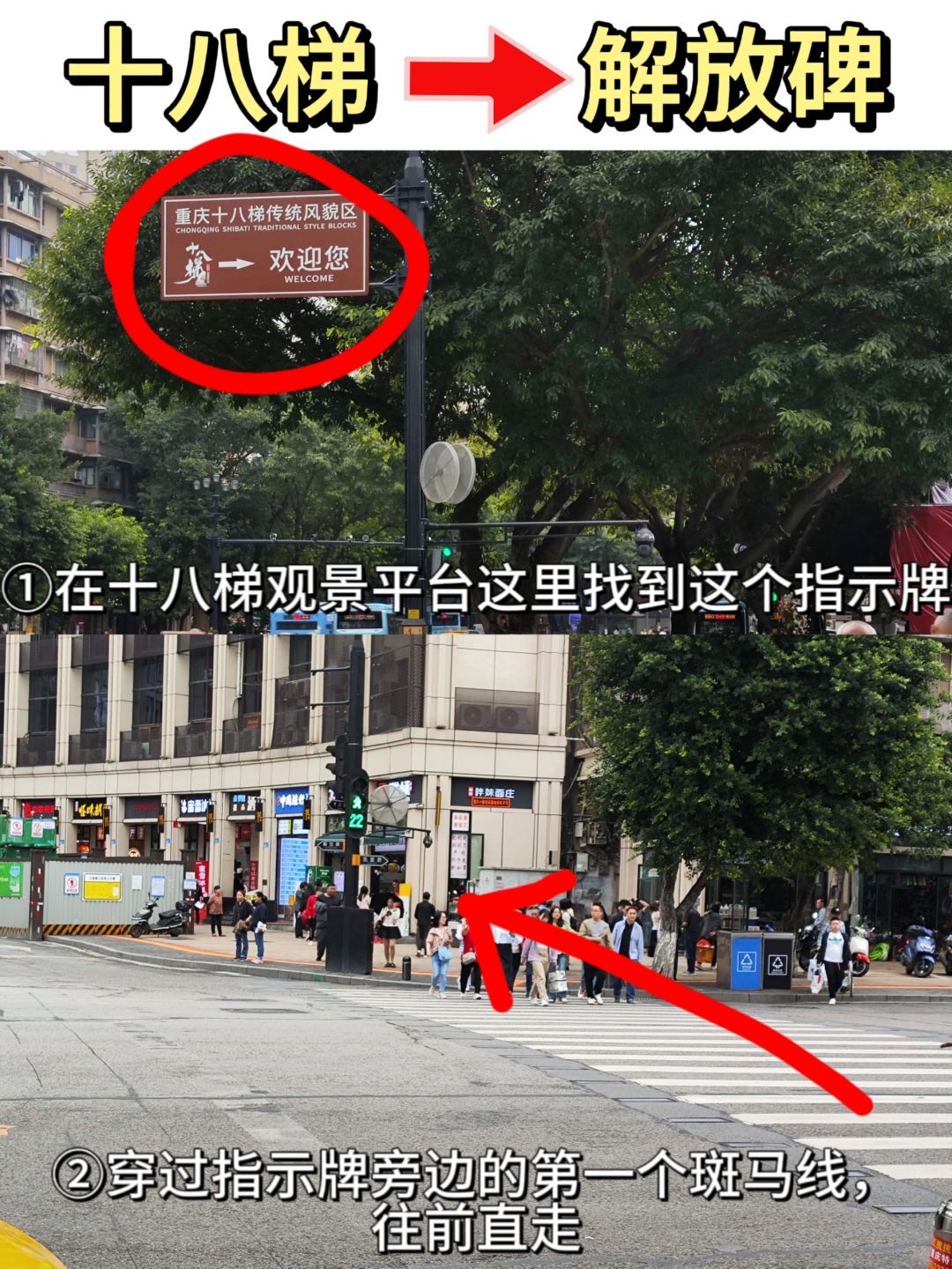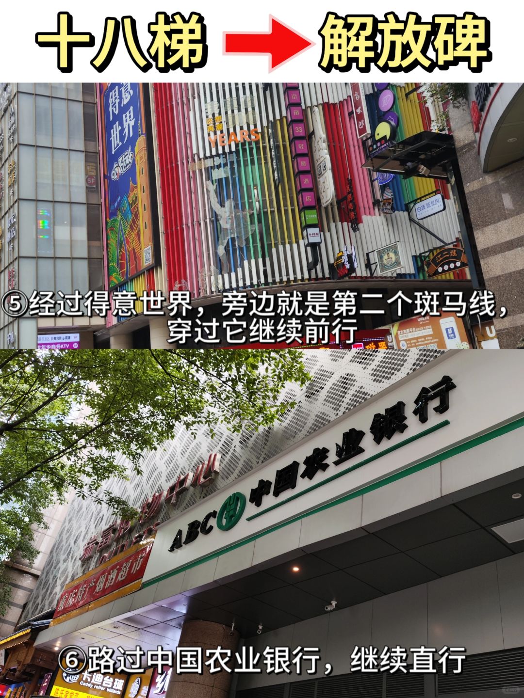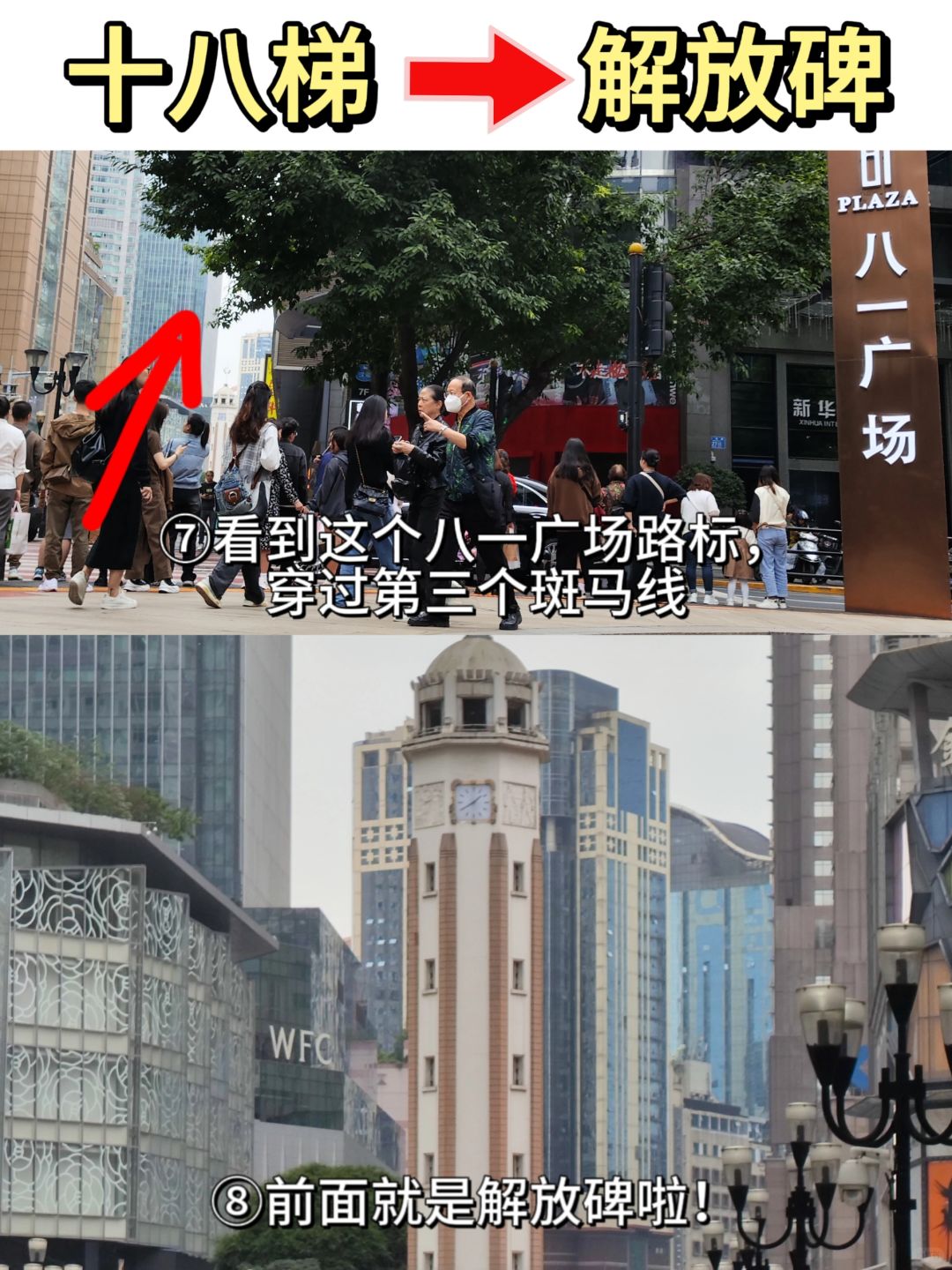 姐妹们快看,我发现了什么‼️‼️‼️本来以为从十八梯回到解放碑需要打车,结果发现只需要经过三个马路就行了,5分钟快速到达,好近‼️而且这条路线基本是直线,根本不需要绕路,对路痴太友好了!