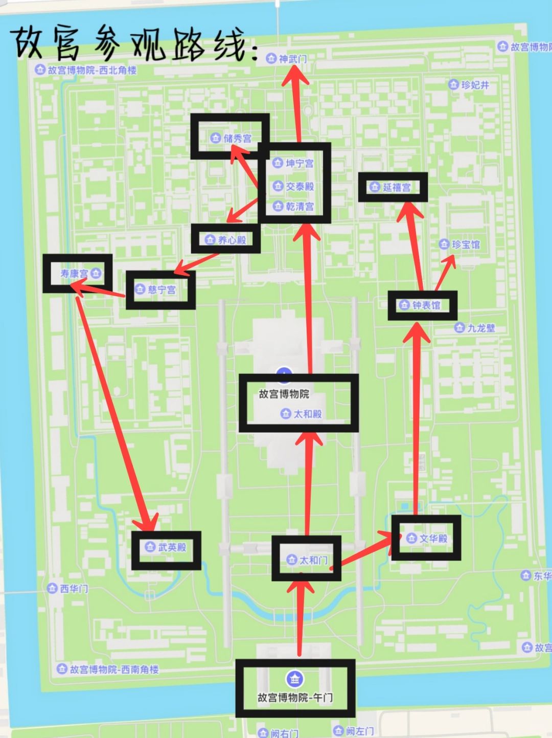 打卡景点:故宫、长城、故宫博物院、圆明园遗址、颐和园……