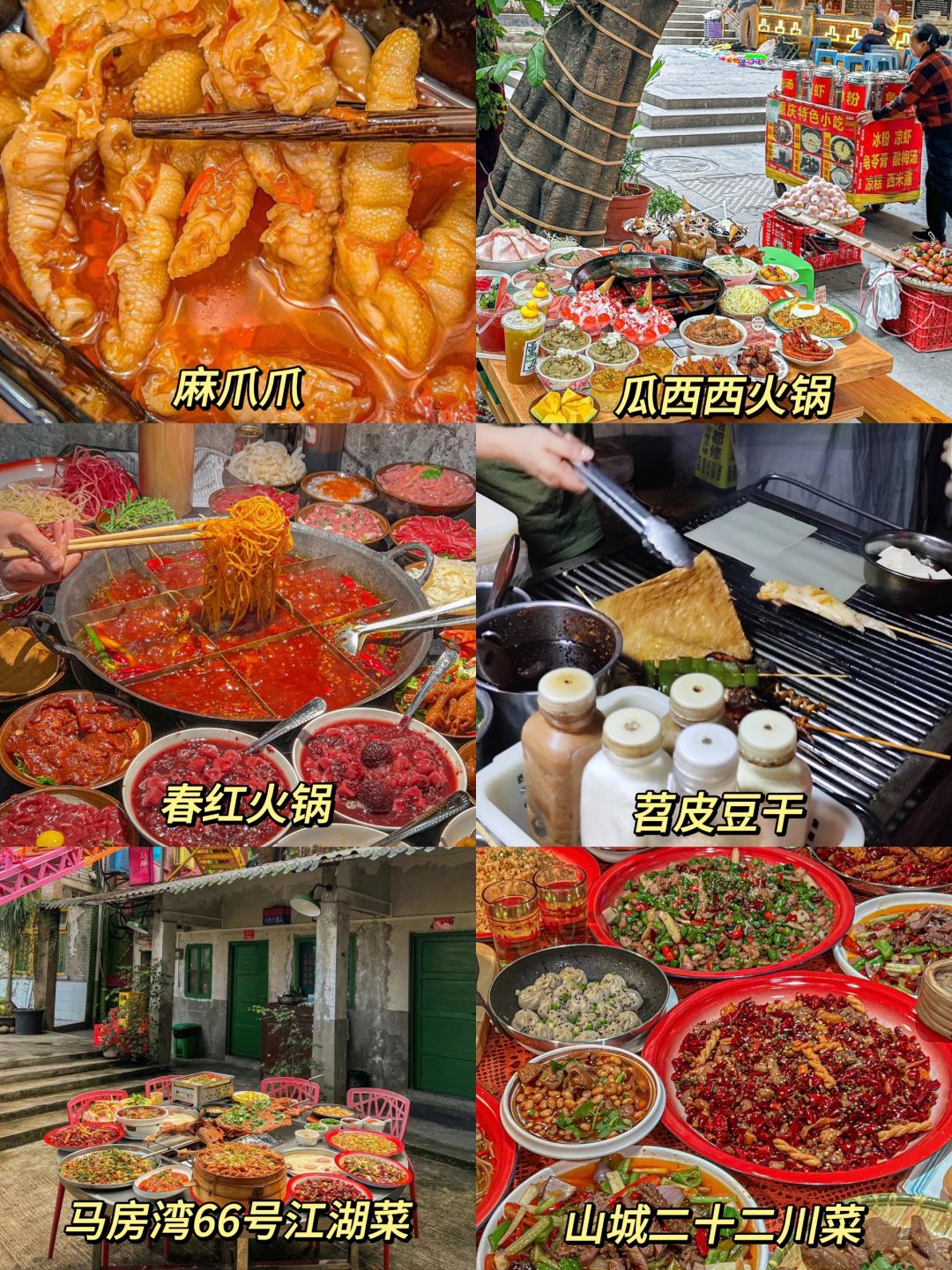 重庆的小吃也是一绝,苕皮豆干、还有麻爪爪的酸辣凤爪、酥肉都特别的好吃。