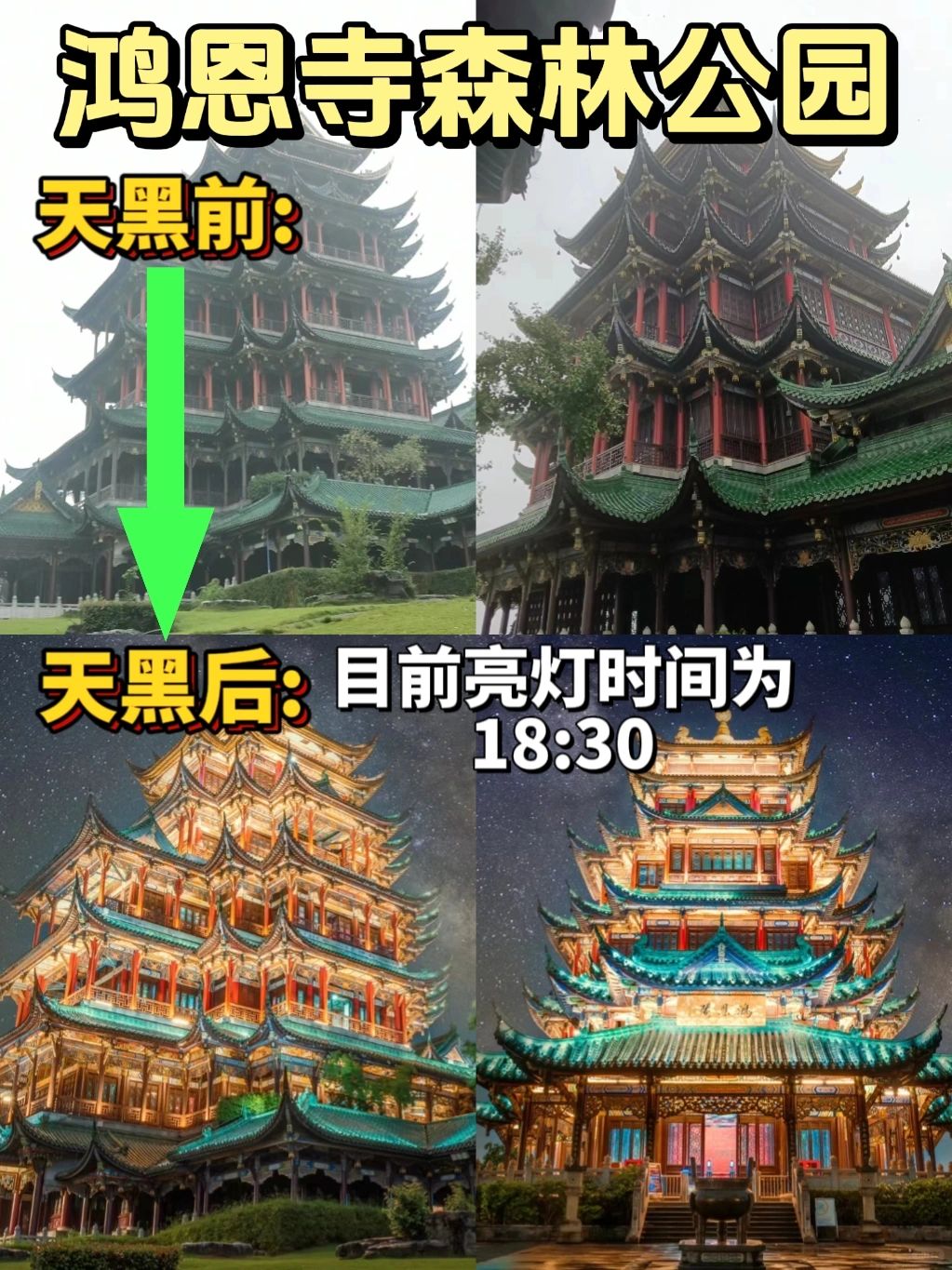 白天和夜晚完全是两种景象,等鸿恩阁亮灯后,有种梦回大唐的感觉。