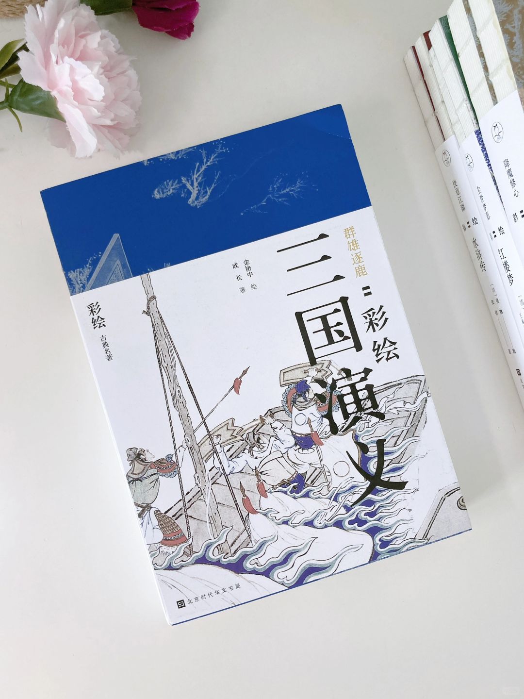 🔵《群雄逐鹿:彩绘三国演义》选取金协中绘本中最具代表性的场景、人物和故事进行构图,以每回2幅,共计240幅工笔重彩全面演绎了三国的风云历史,全书图文契合,相得益彰,堪称雅俗共赏之宏篇佳构。
