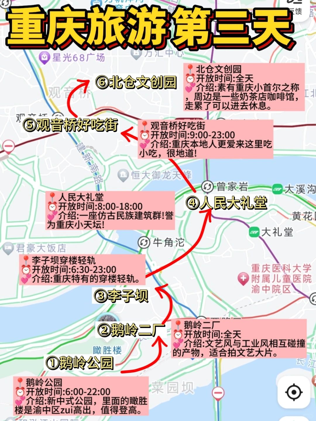 如果你做了很多攻略后还在纠结去重庆该怎么玩⁉️那就可以跟着这三张地图走,每天打卡6-8个景点,轻轻松松逛完重庆!攻略里面还包含了💞景点预约、💞住宿安排、💞重庆交通、💞重庆美食选择等,一篇攻略在手,完全不用担心不知道怎么玩💯!