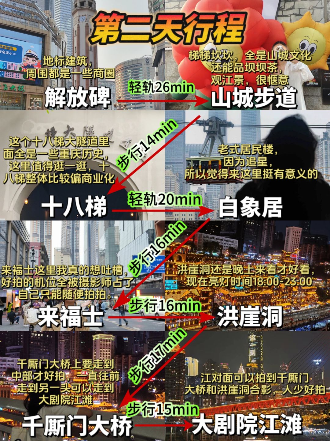 🏃DAY2:解放碑→山城步道→十八梯→白象居→来福士→洪崖洞→千厮门大桥→大剧院江滩