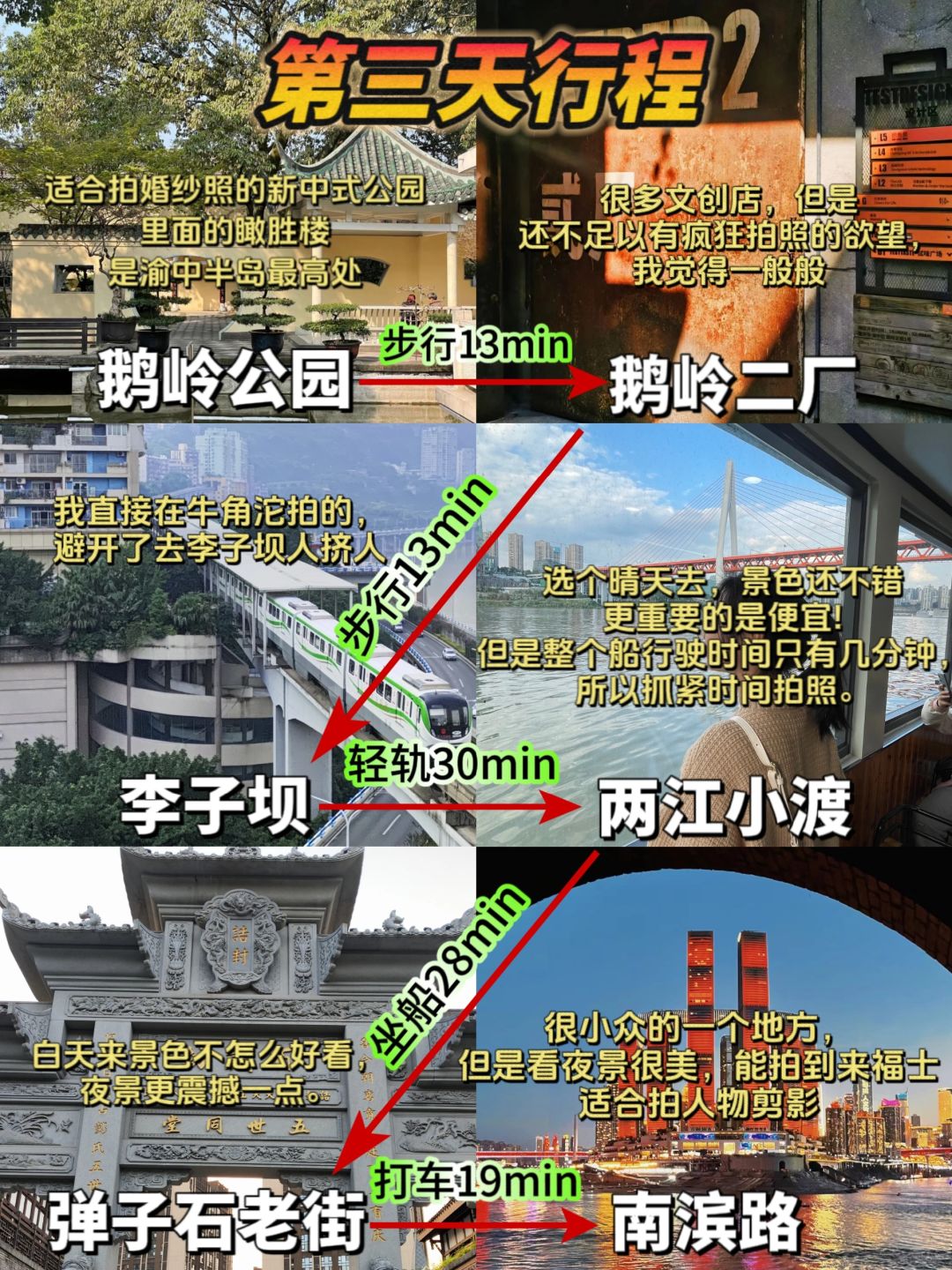 🏃DAY3:鹅岭公园→鹅岭二厂→李子坝→两江小渡→弹子石老街→南滨路