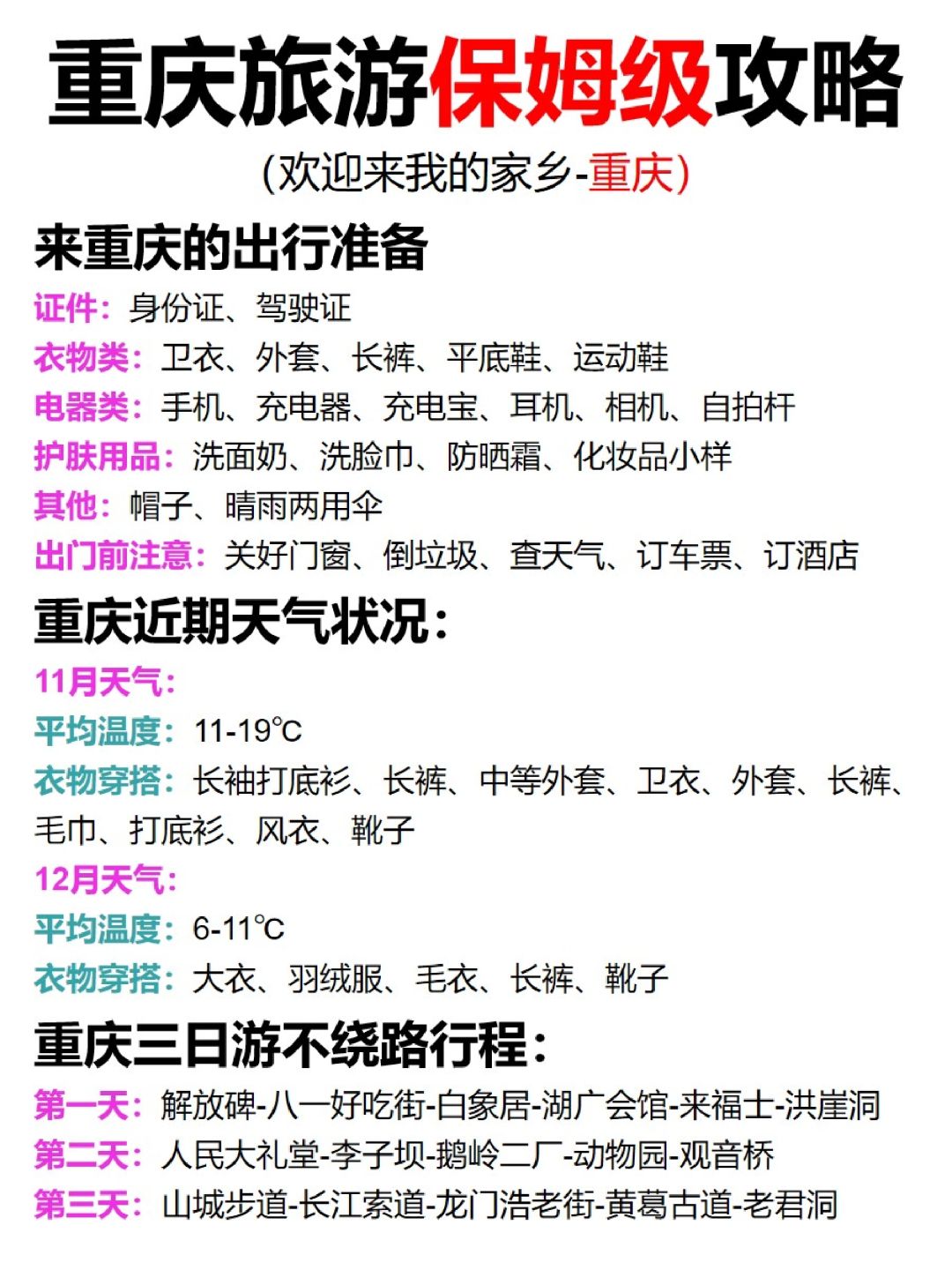 勇敢的人先去享受世界了!大胆一点! 车票哪有青春贵! 今年仅剩一个月啦,快抓住今年的尾巴,去外面看看世界吧! - 如果你想看的世界是我的家乡——重庆,那这里备好一份保姆级攻略,图6-8👆🏻👆🏻,希望能够帮到要来重庆的姐妹哇!