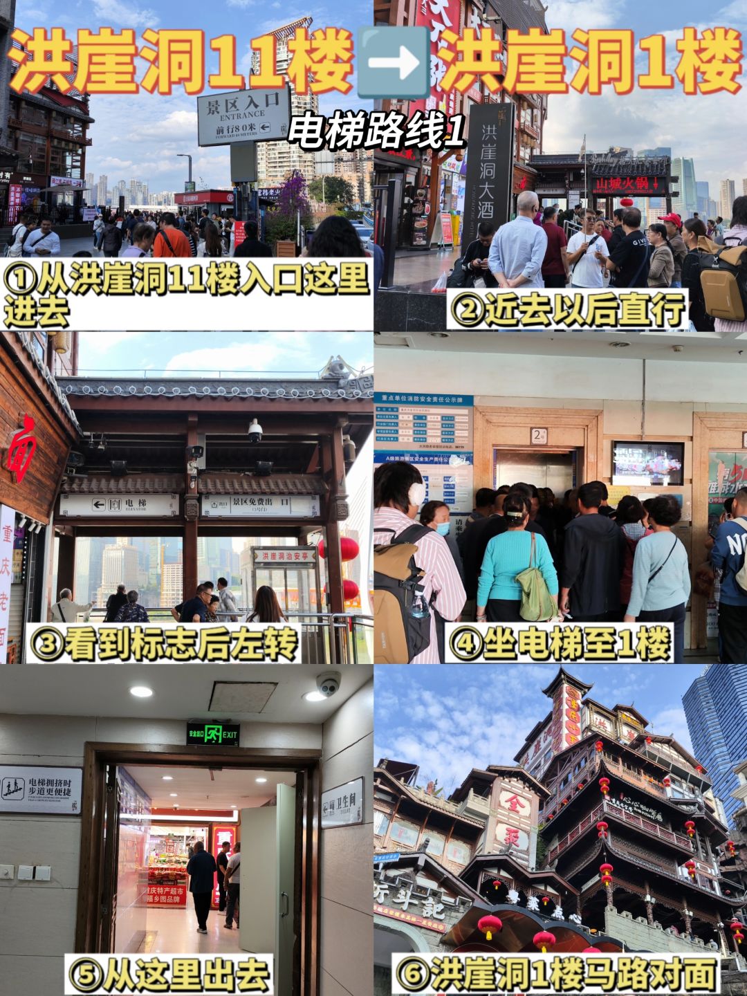 2.洪崖洞根本没有快速通道,他们所谓的快速通道就是免费的电梯,我已经整理出来,跟着路线图走就行了。