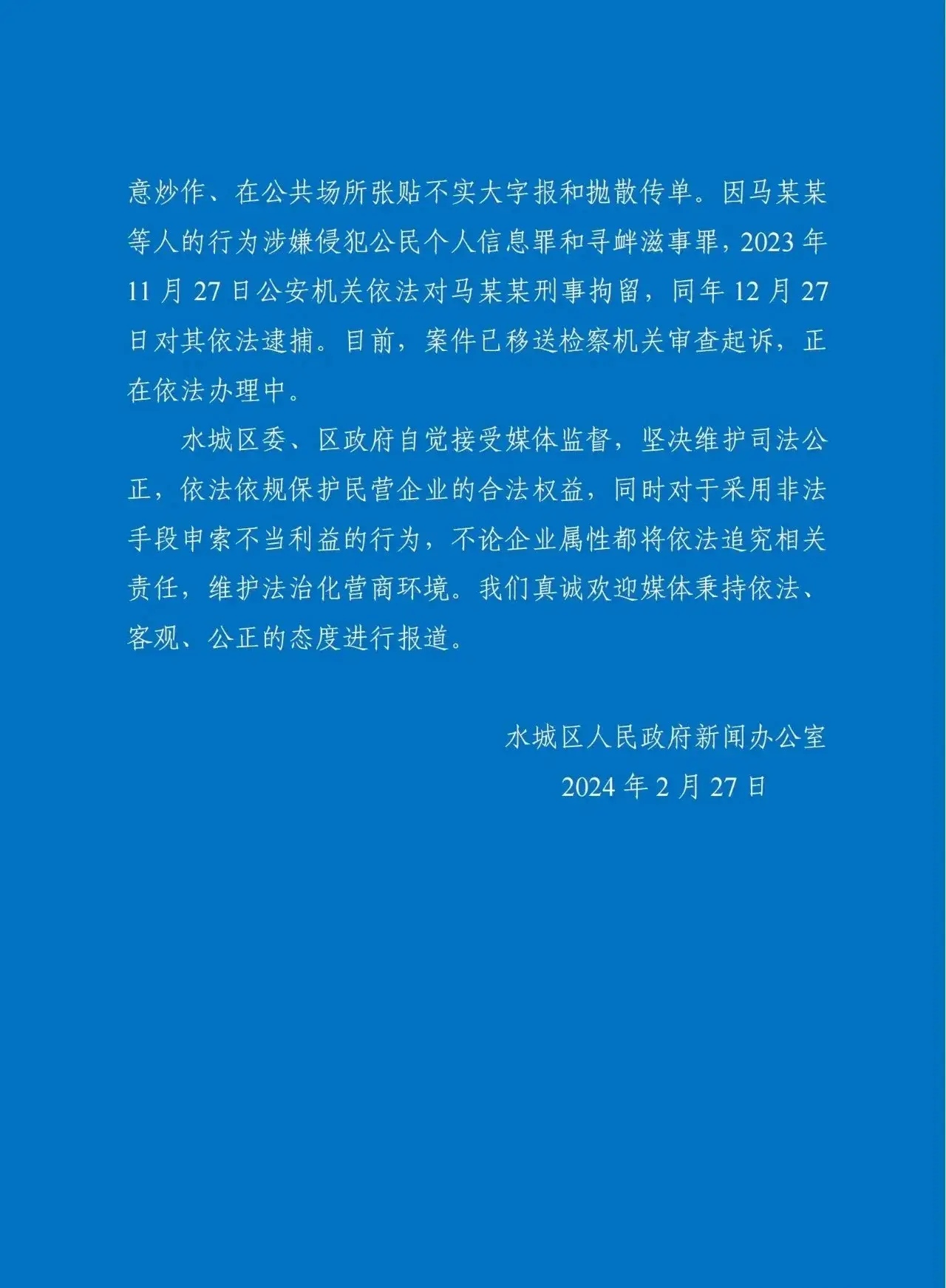 为什么抓人?当地也给出了答案。2022年10月,马某某为讨要有争议的工程款雇佣耿某某、方某某采取安装GPS定位器等手段跟踪他人,非法获取公民个人信息;2023年9月以来,马某某、侯某某等人编造虚假信息,安排洪某某等3人、雇佣屈某某等5人在网上恶意炒作、在公共场所张贴不实大字报和抛散传单。
