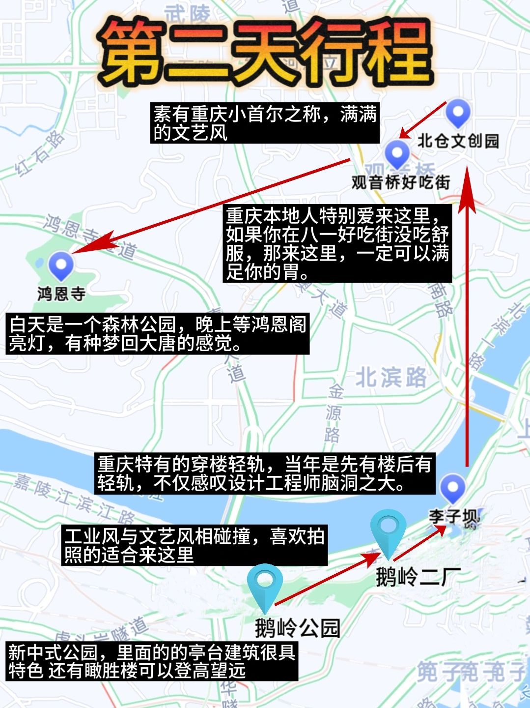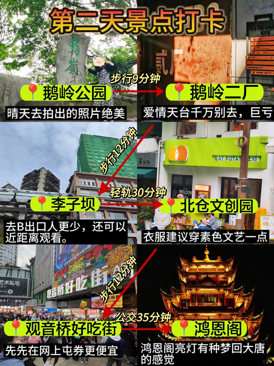 🍀第二天:鹅岭公园-鹅岭二厂-李子坝-北仓文创园-观音桥好吃街-鸿恩寺