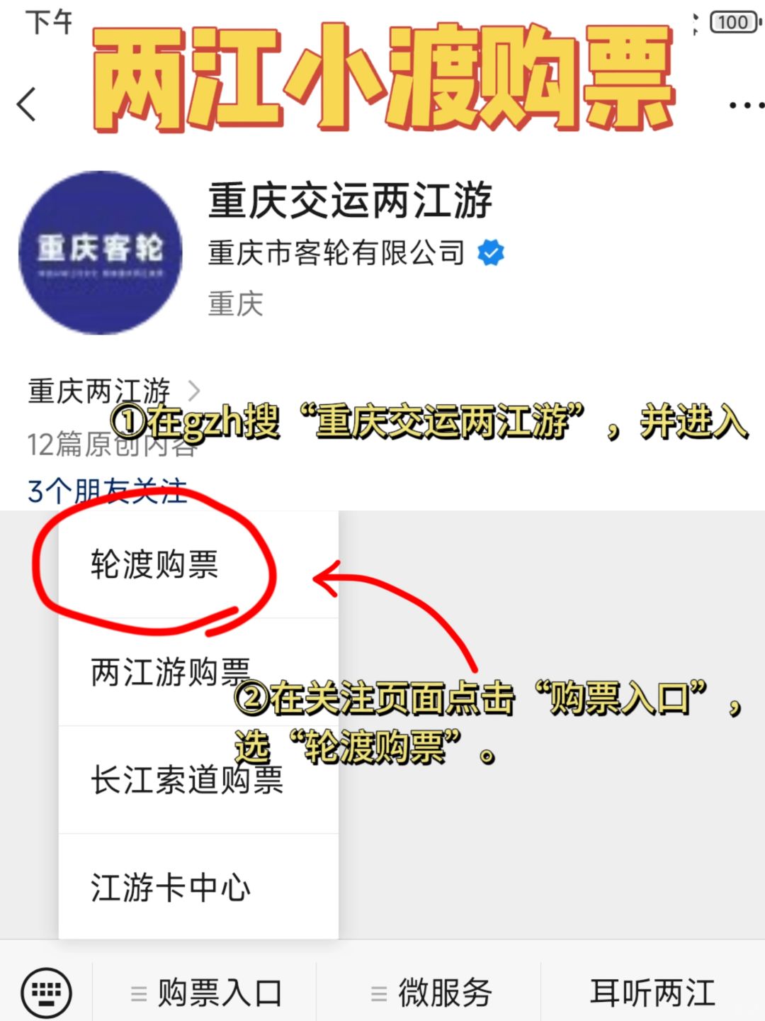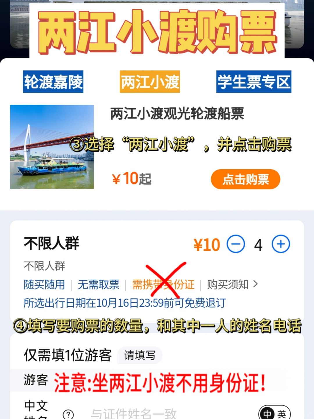 🎫购票方式:在gzh“重庆交运两江游”上买票,坐船时不需要身份证!