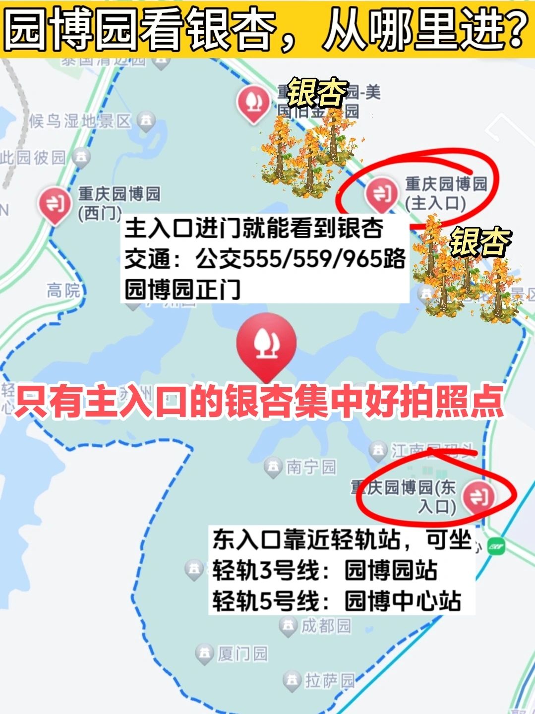 1.建议坐公交去园博园的大门赏银杏,成片的银杏树林拍照更好看,园博园里面的银杏几乎快掉完了,而且很散,拍照不好看。