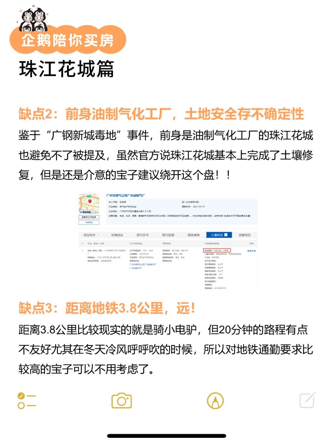 鉴于“广钢新城毒地”事件,前身是油制气化工厂的珠江花城也避免不了被提及,虽然官方说珠江花城基本上完成了土壤修复,但是还是介意的宝子建议绕开这个盘!!