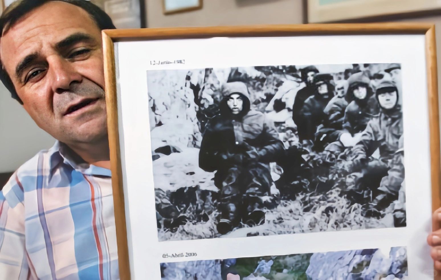 图13:马岛战争阿根廷老兵何塞.路易斯. Aparacio手持和他的队友豪尔赫.苏亚雷斯的照片