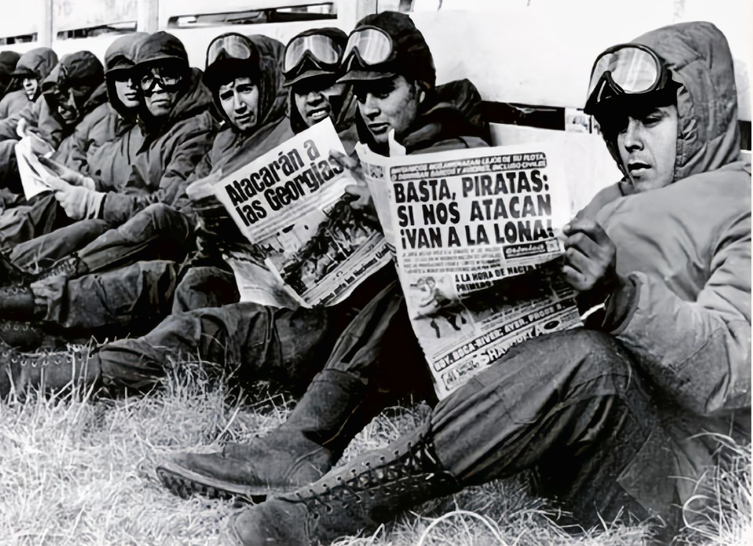 图6:马岛战争中的阿根廷士兵正在阅读报纸
