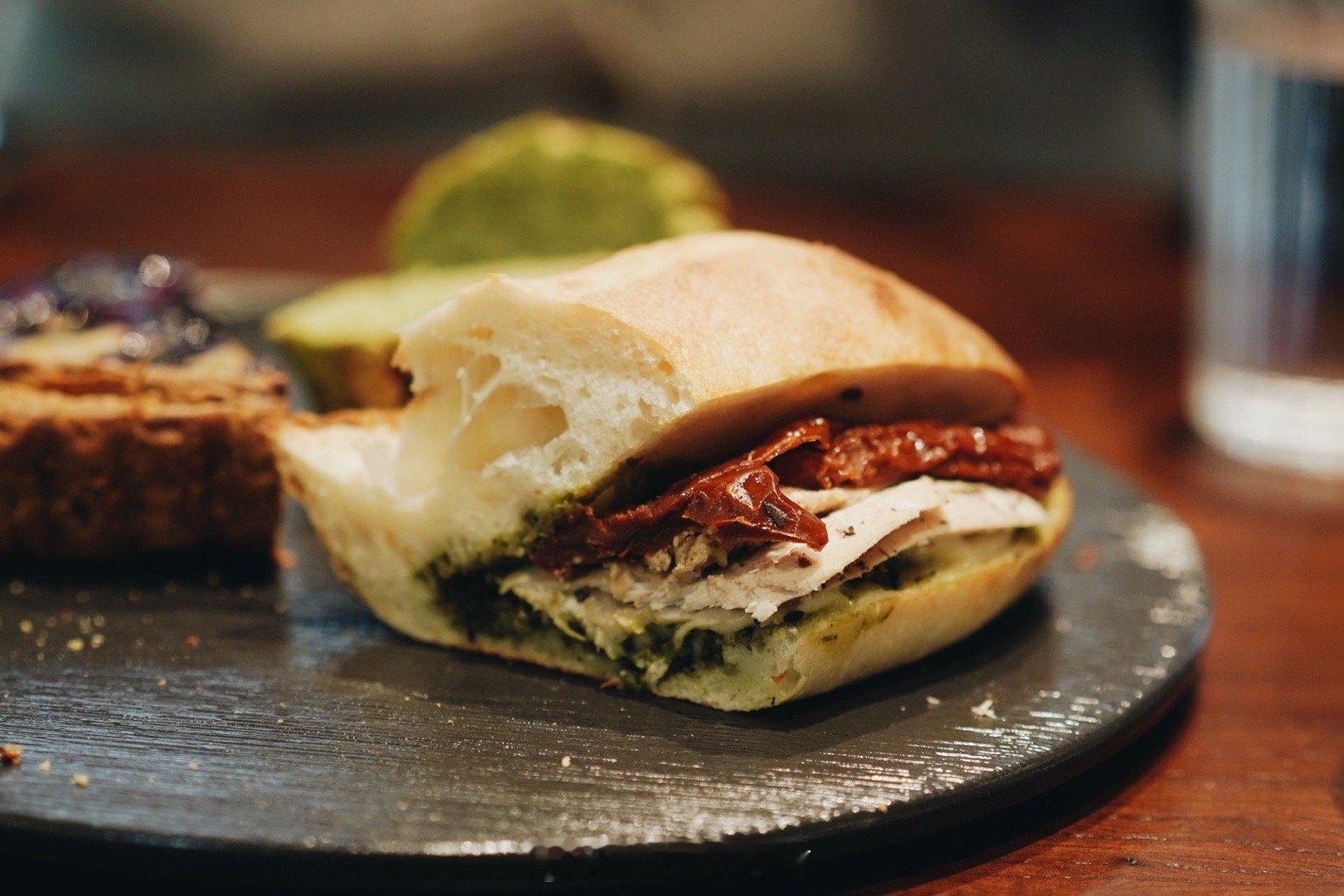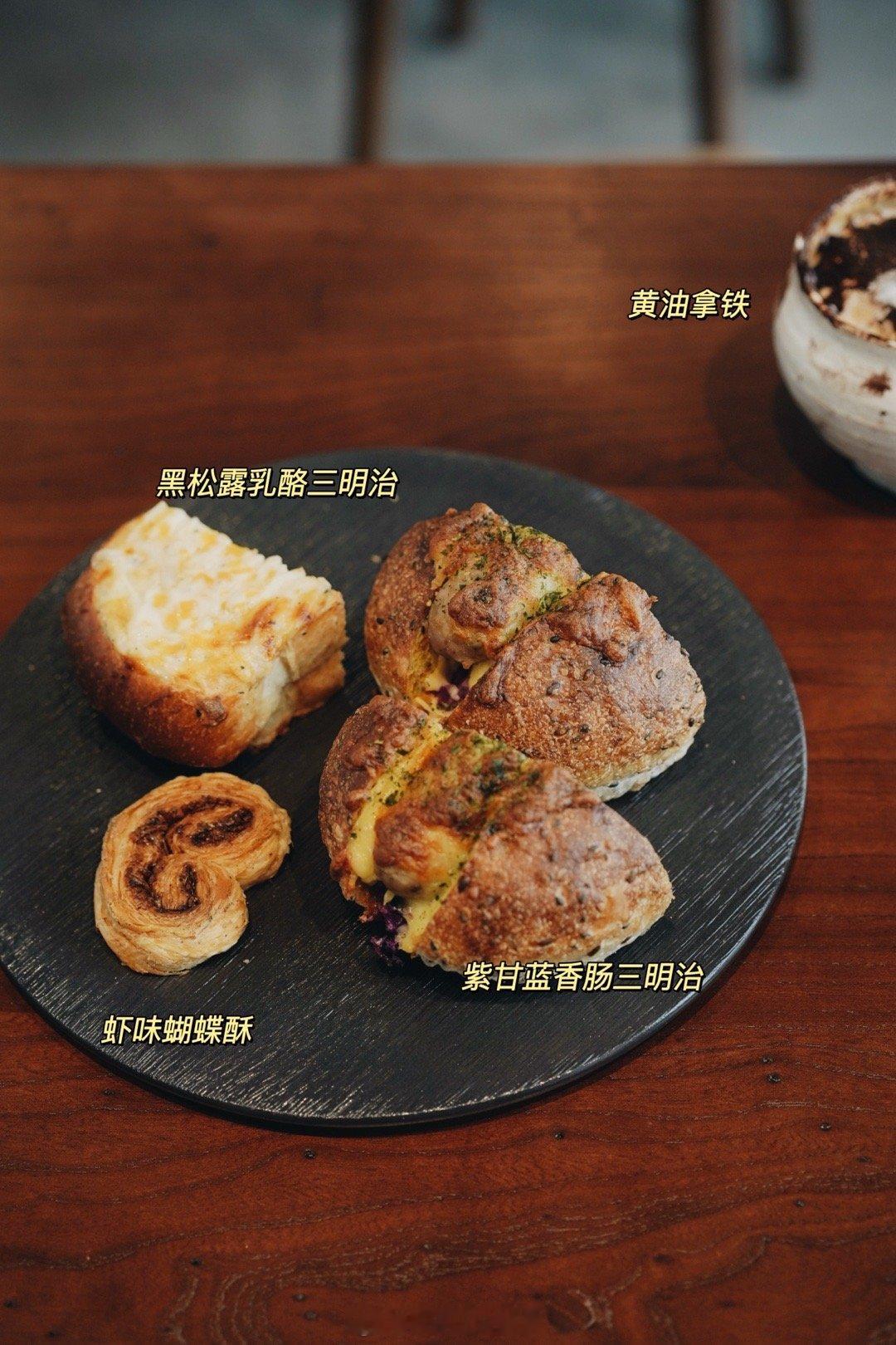 法式面团都蛮喜欢的,表皮脆而不硬,含水量很高,内里湿润又Q弹。青酱鸡胸三明治里搭配了风干的油浸小番茄,紫甘蓝三明治里则是黄芥末做调味,如此西式的口味在宁波好像还蛮受欢迎的。