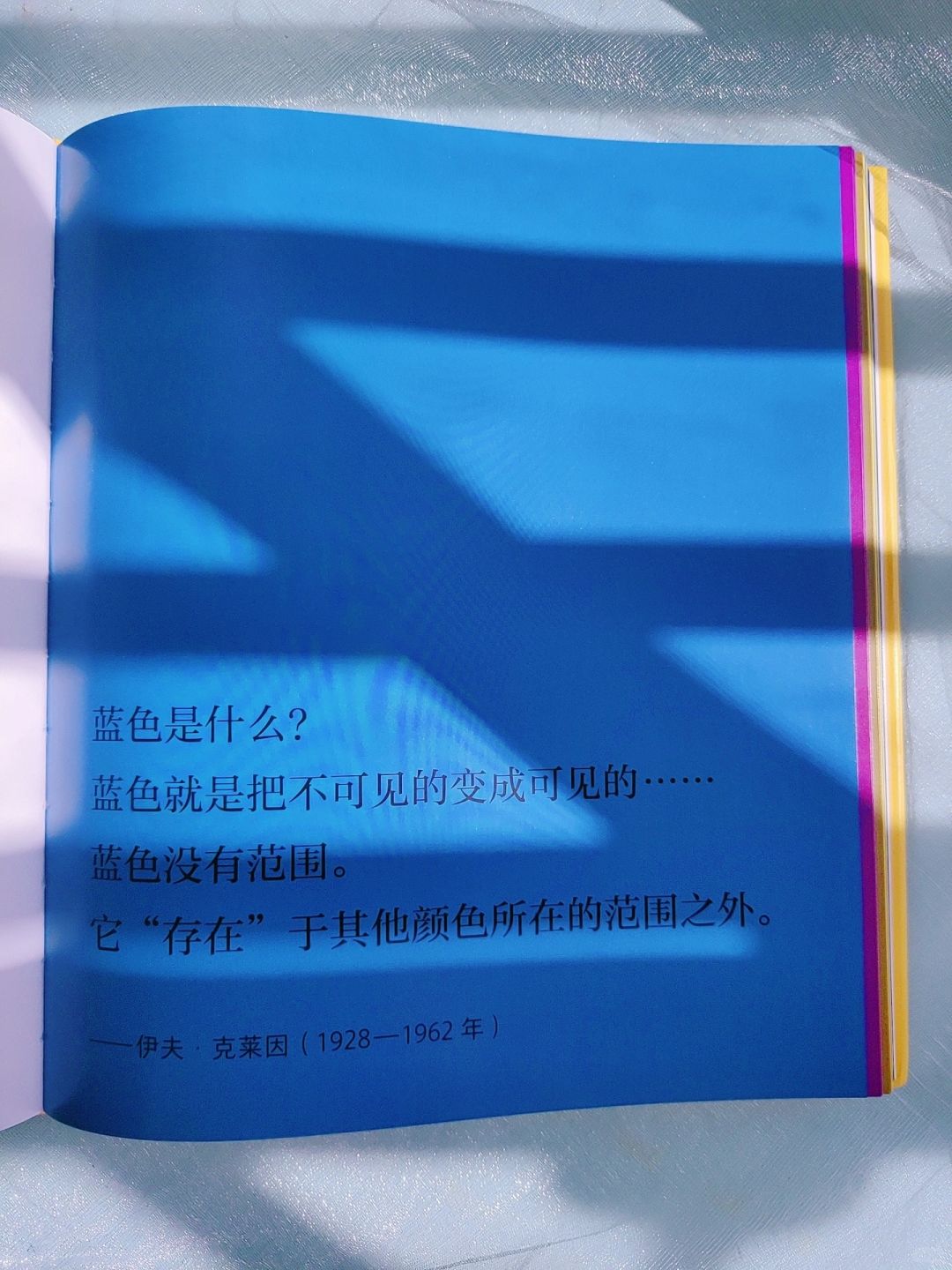 克莱因一次只专注于一种颜色,不受其他影响,所以他笔下的蓝色一派勃勃生机。在艺术家笔下,颜色是一种可被感知的符号。