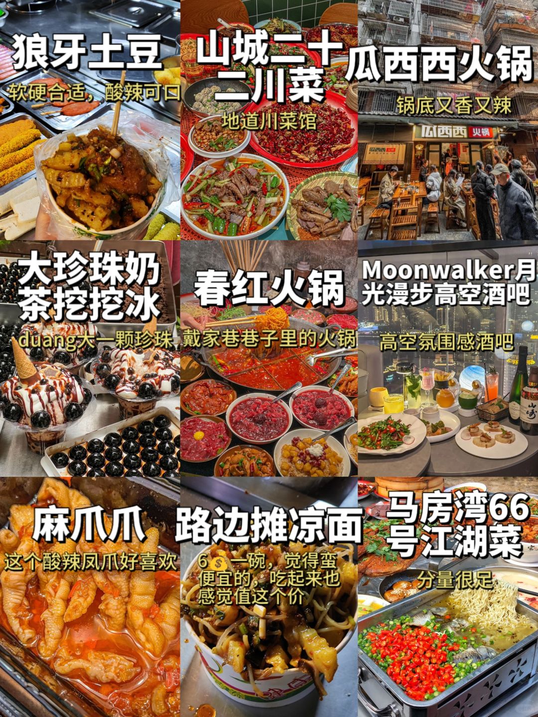 感受重庆地道的小吃(人均25),比如现炸酥肉、麻爪爪等,这里狠狠避雷网红大苕皮,本地人说,超过4块的苕皮,都是坑人的。