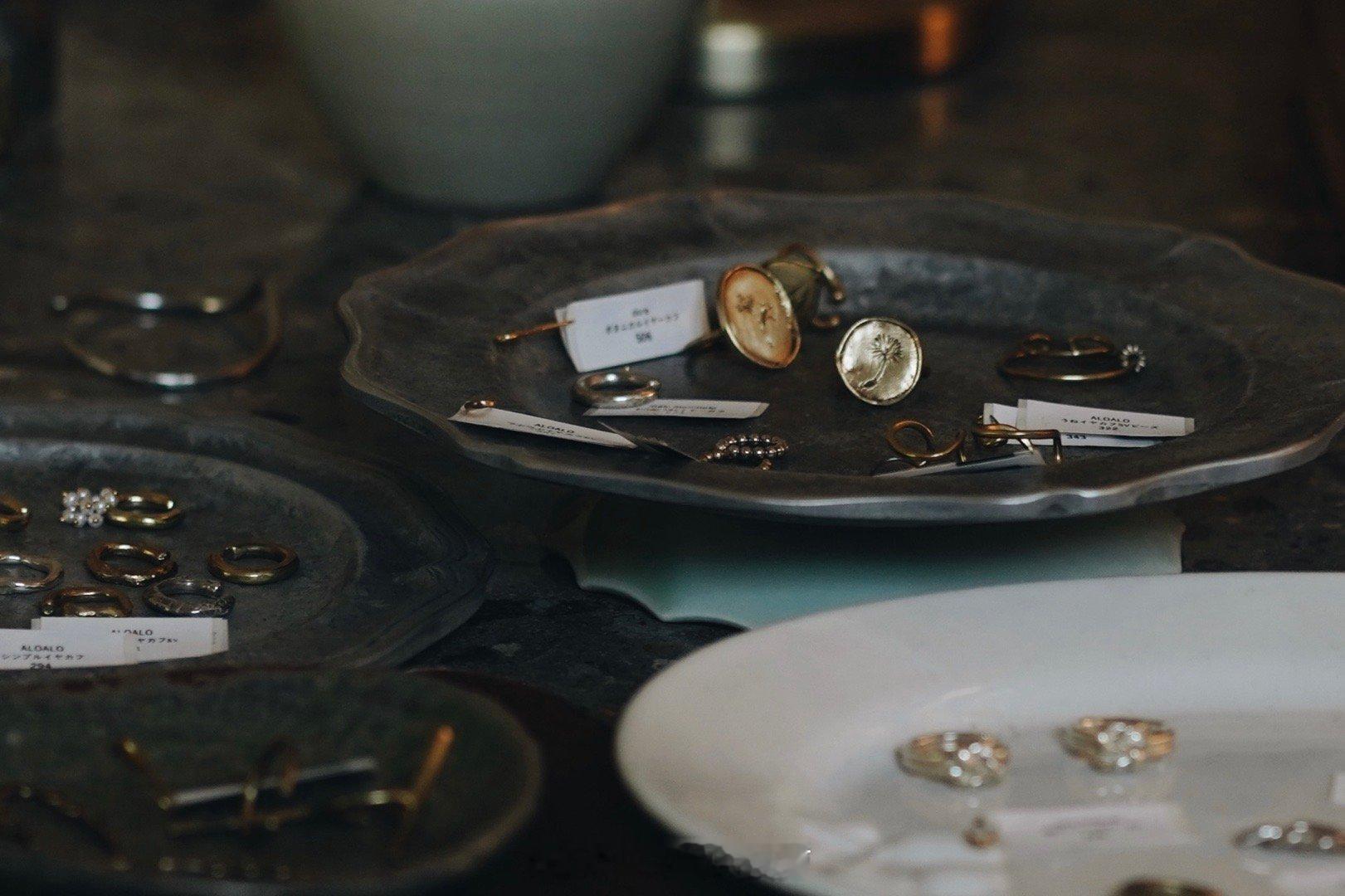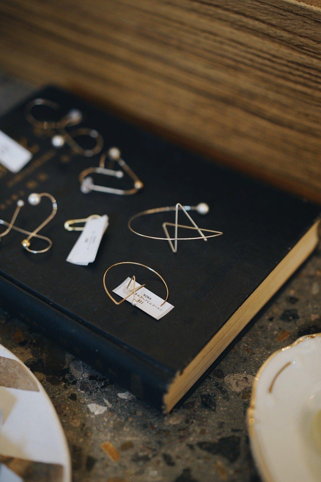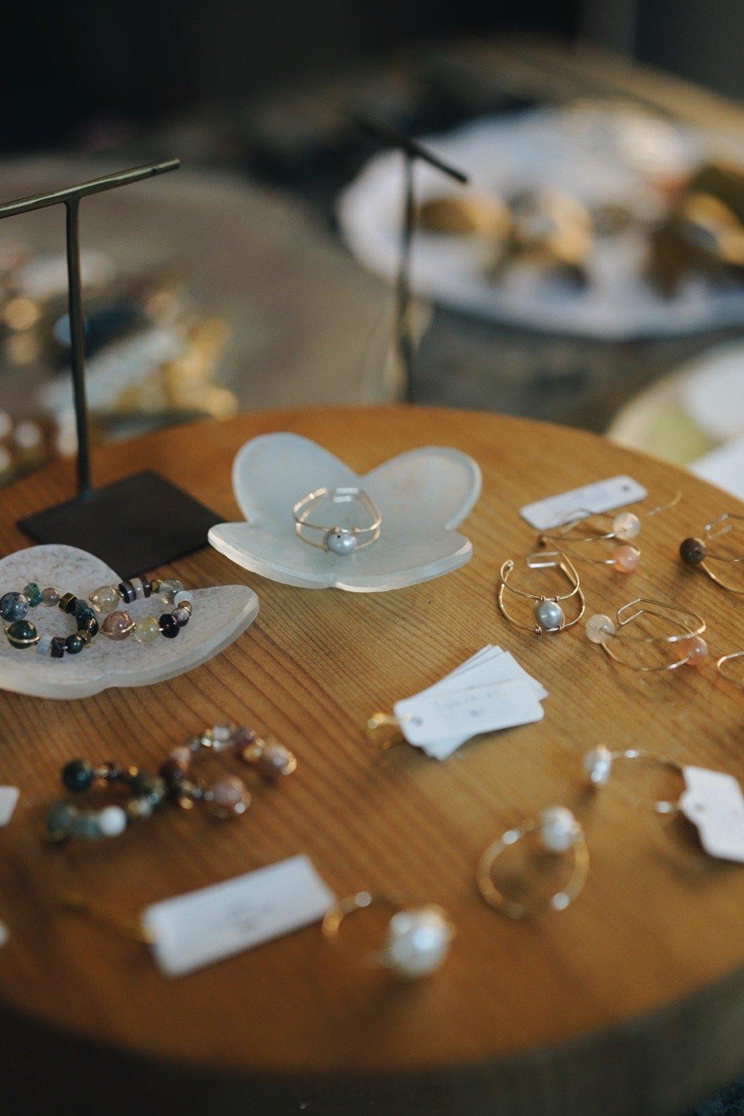 展览设在去年滨江新开的买手空间forulertown,主要售卖首饰、服装、作家器皿和中古器皿。(我去年在这里斥巨资买了菅野贵峰的一只钟“月光浴”。)首饰多用黄铜,搭配珍珠等材料,样子好像平平无奇,但试戴起来每一只都好看。我选了一只单边耳钉,戴在耳朵上像带光环的土星🪐